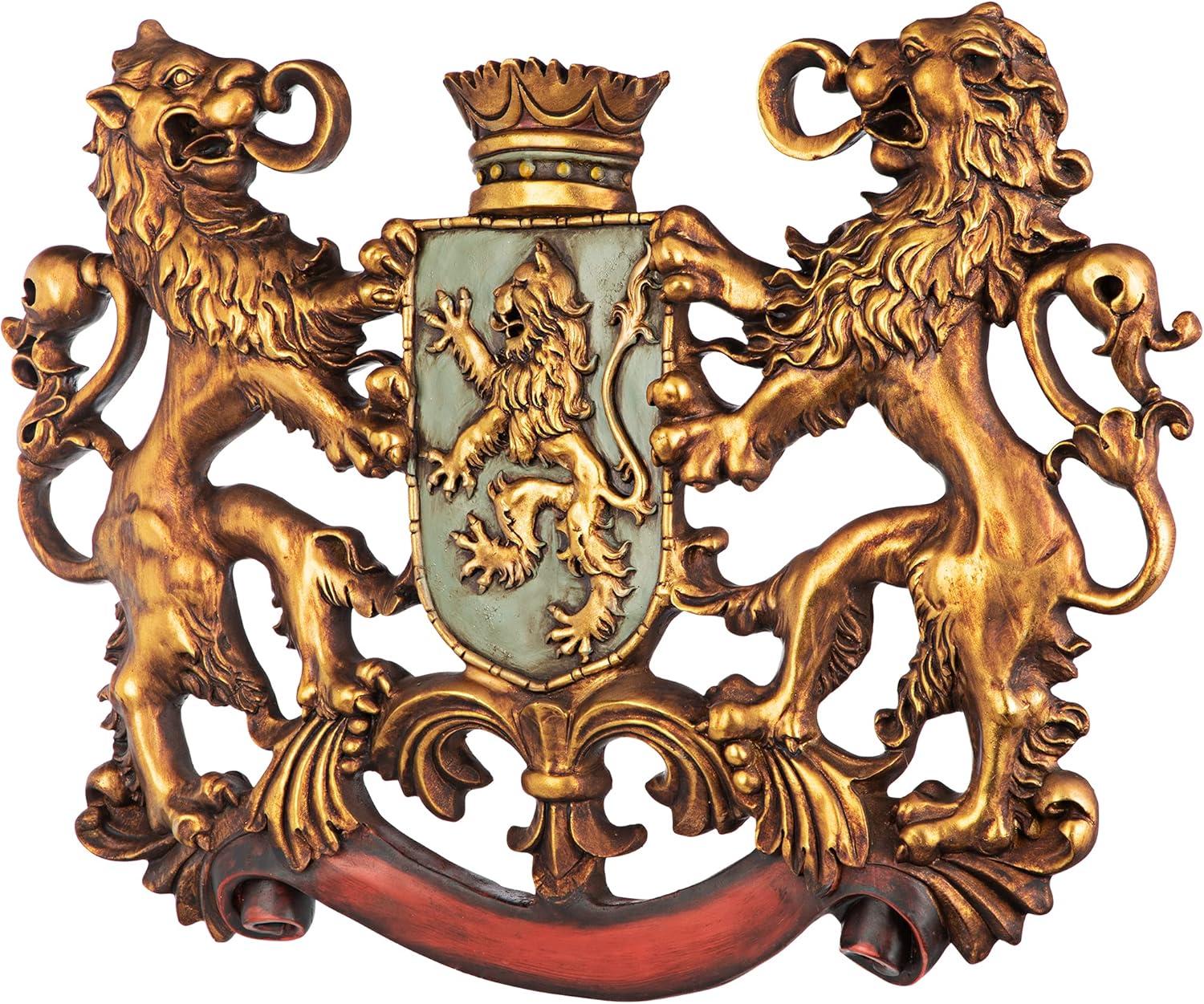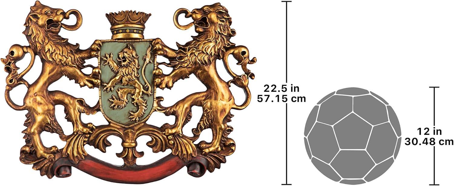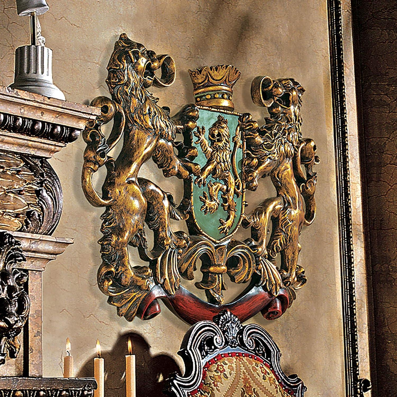 Design Toscano Heraldic Royal Lions Coat of Arms Wall Sculpture, 30 Inch, Full Color