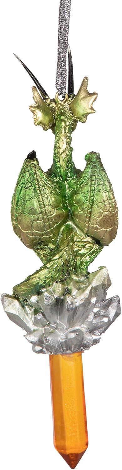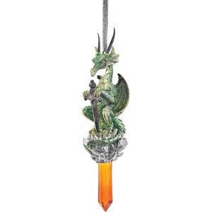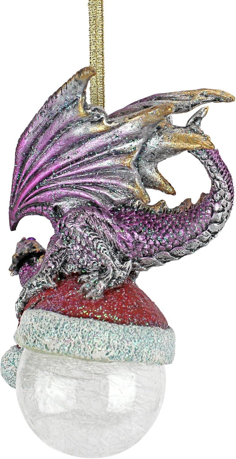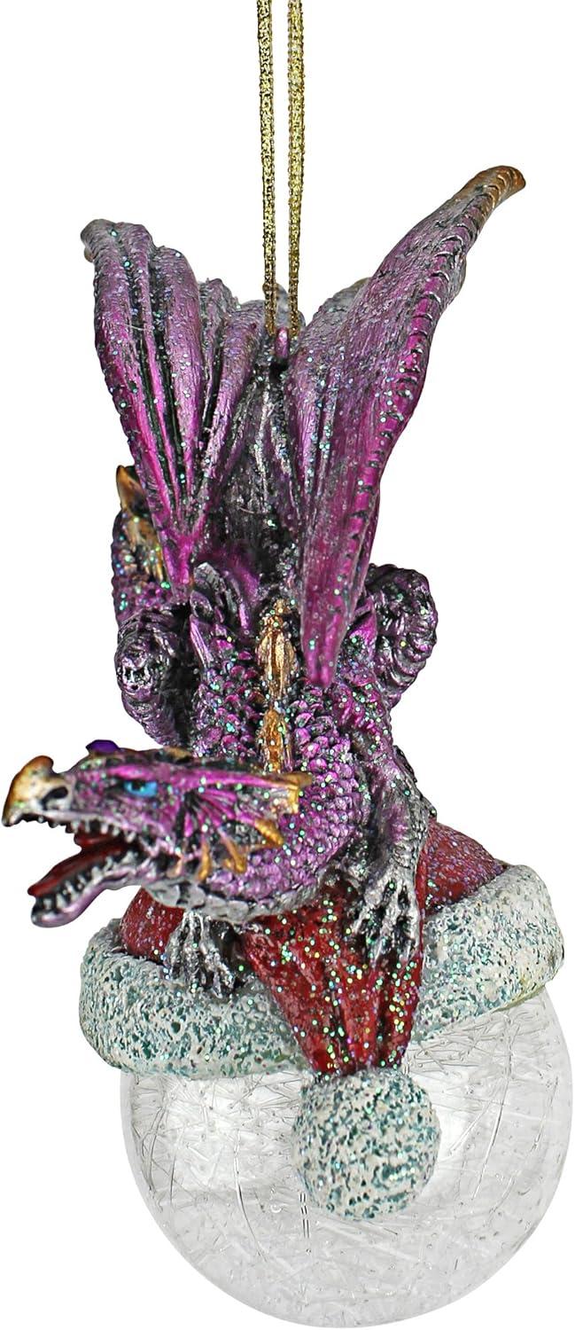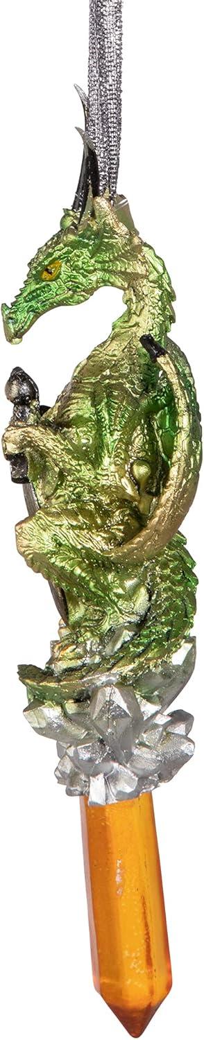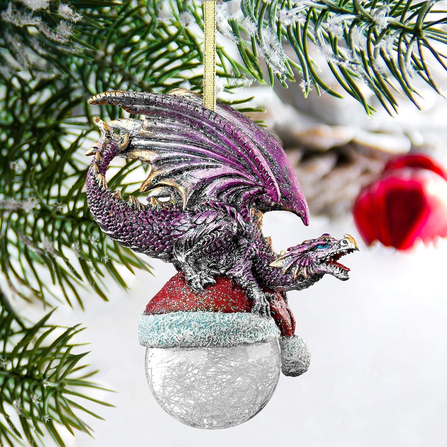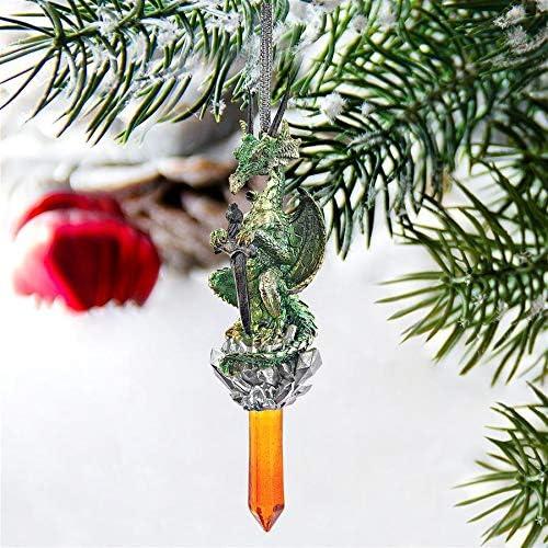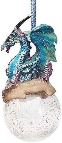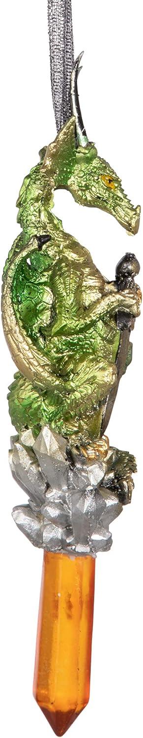 Design Toscano Blitzer the T Rex Dinosaur Christmas Tree Ornament, 5 Inch Long, Cast Stone Resin with Glass Ball, Green Glitter Finish(Celtic Dragon)