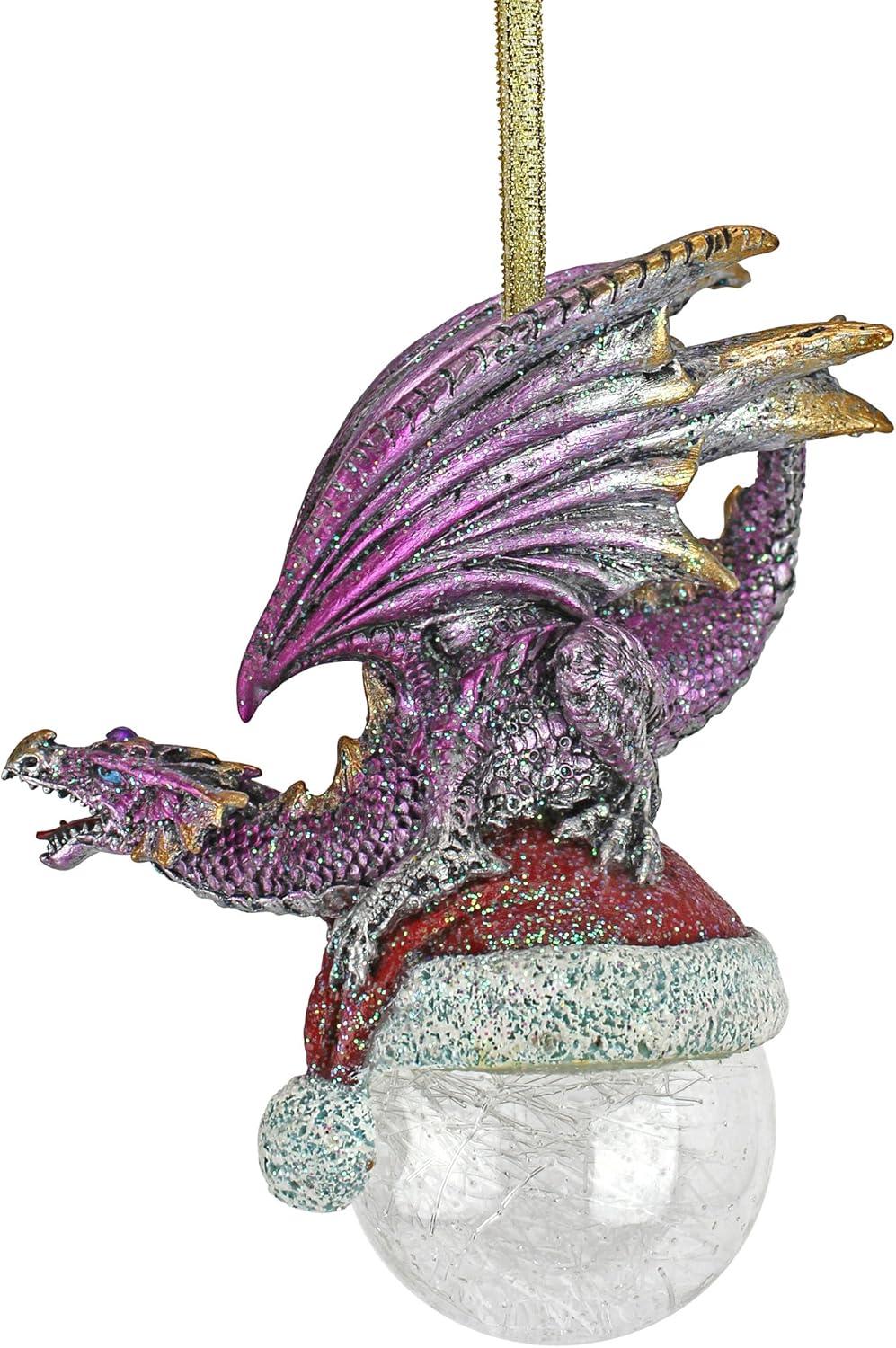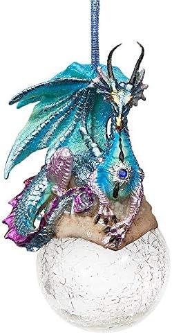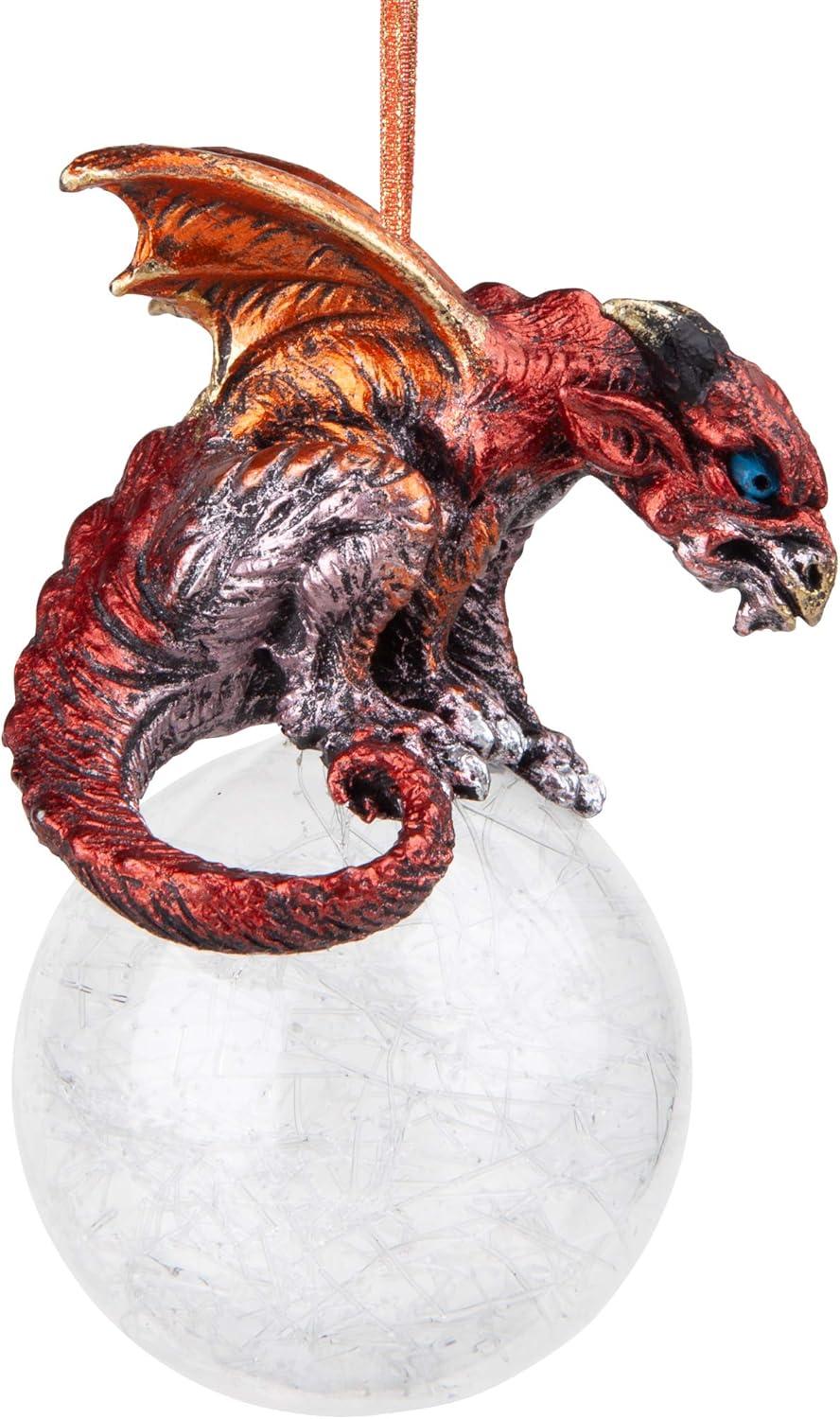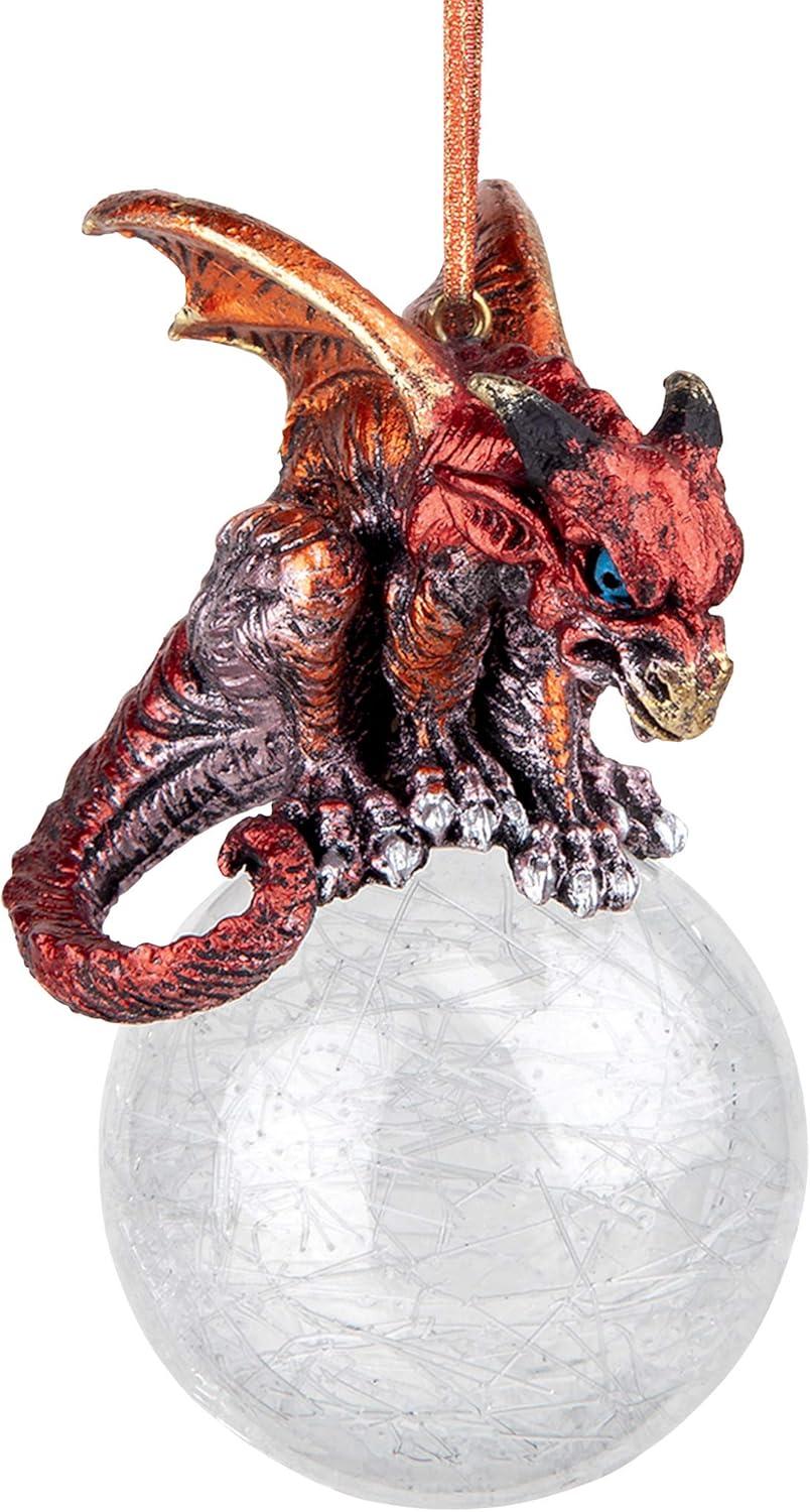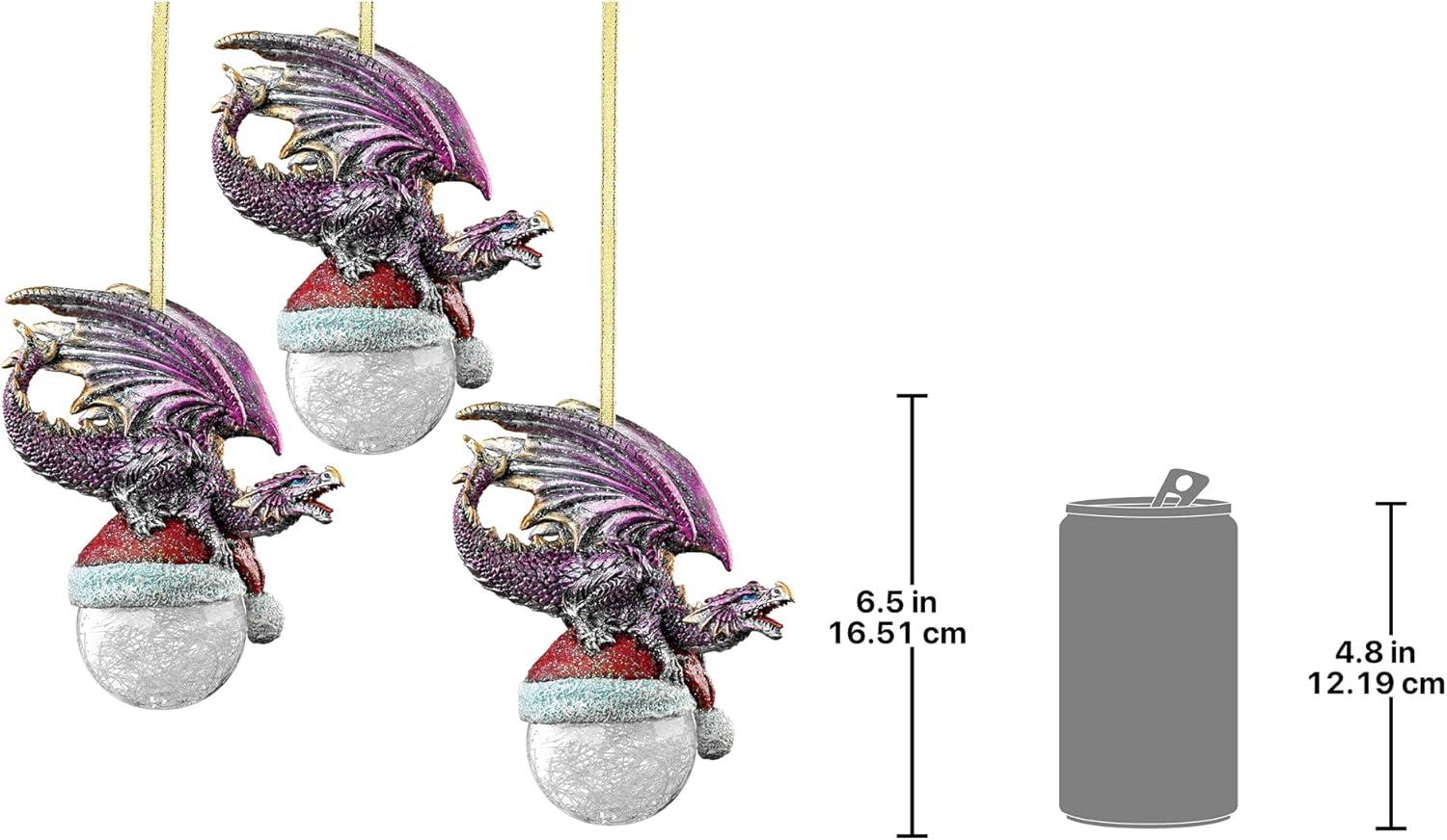 Design Toscano Blitzer the T Rex Dinosaur Christmas Tree Ornament, 5 Inch Long, Cast Stone Resin with Glass Ball, Green Glitter Finish(Celtic Dragon)