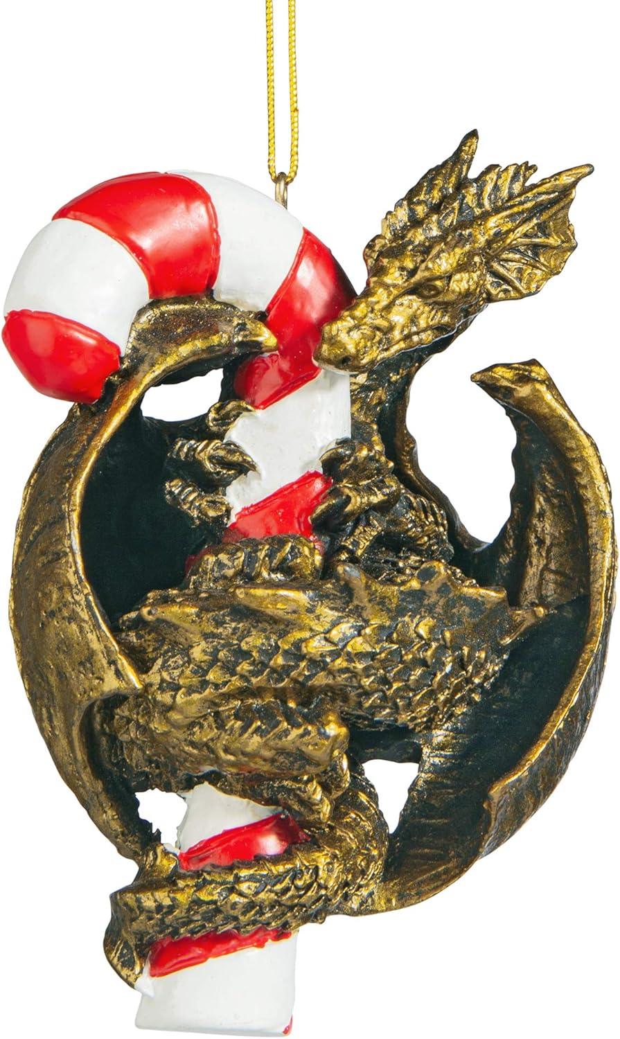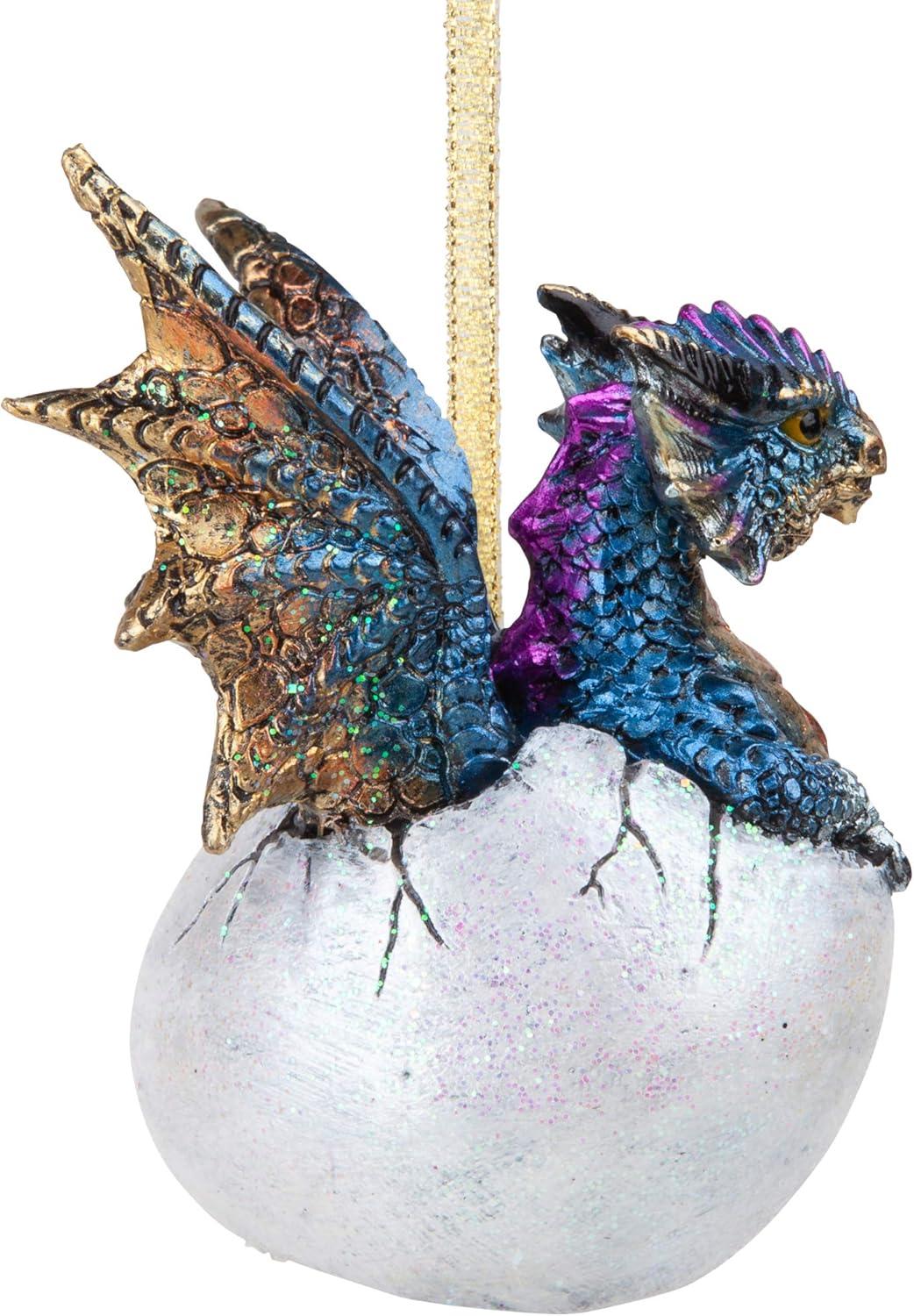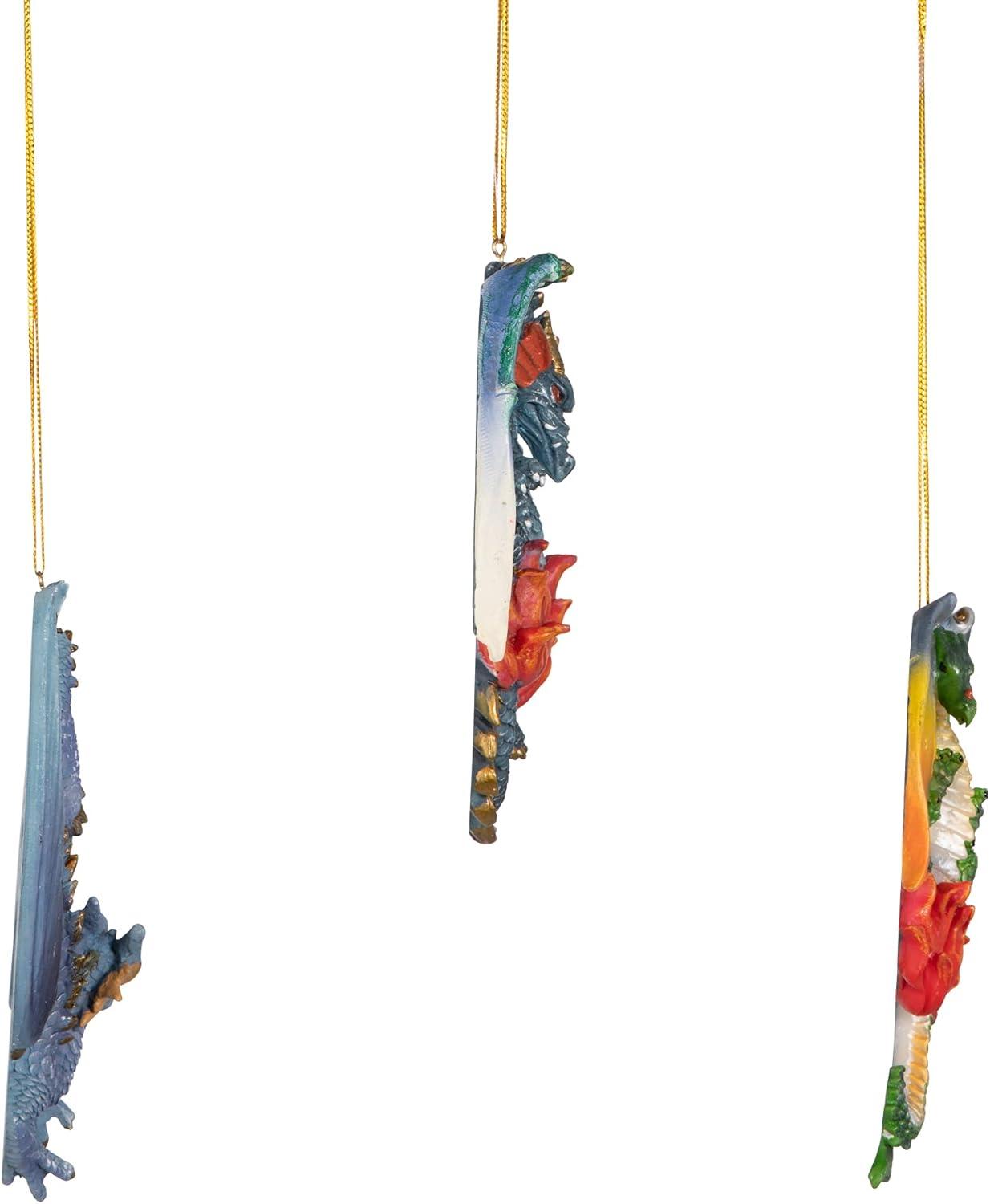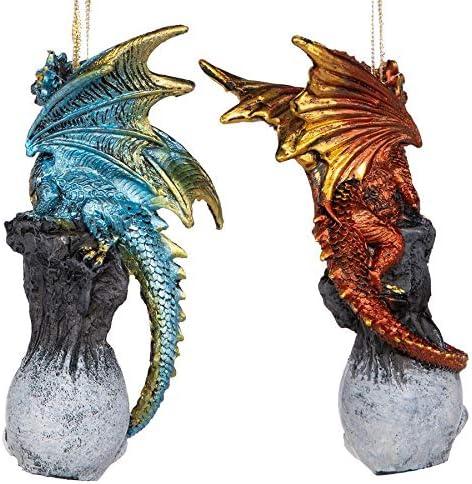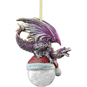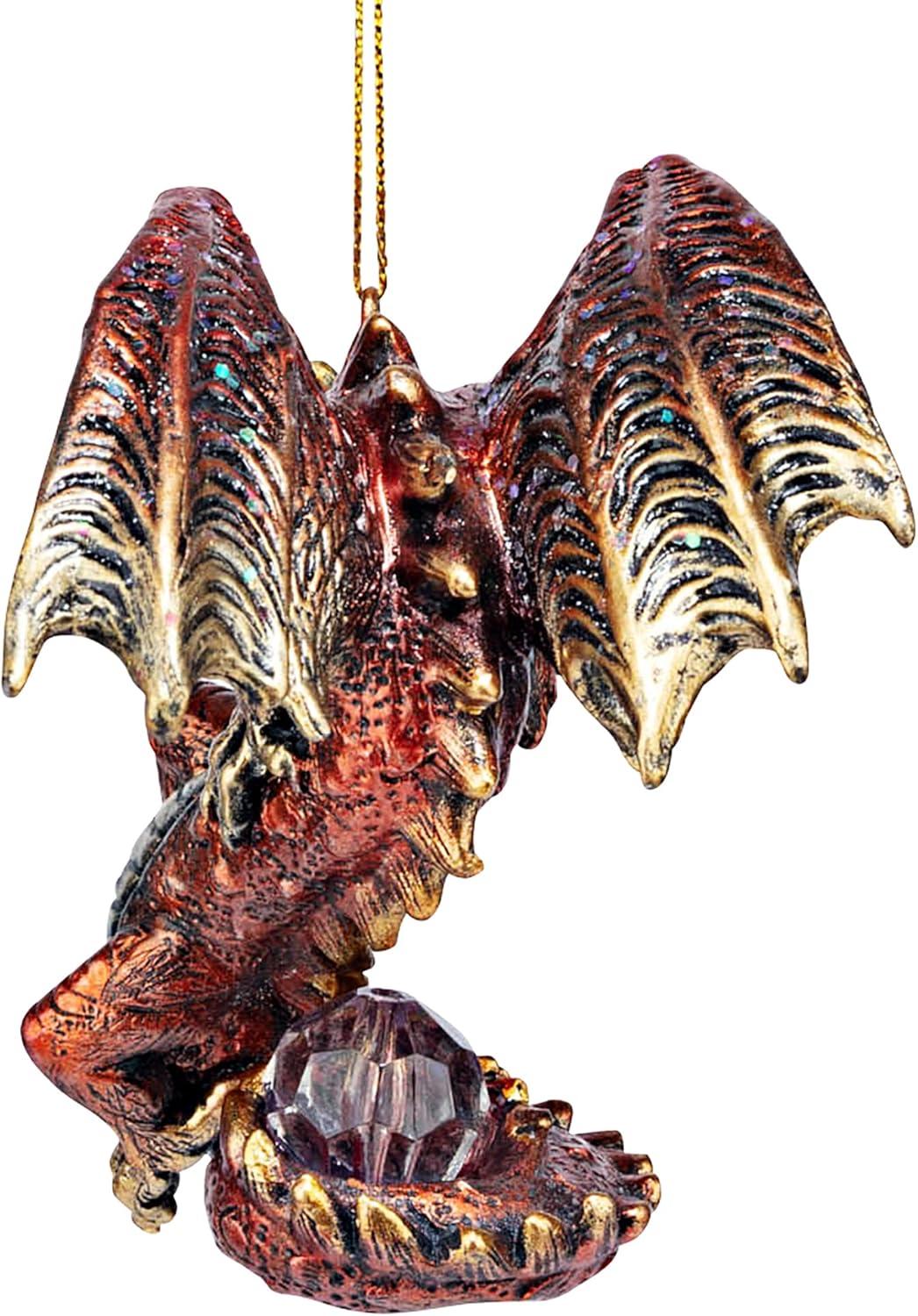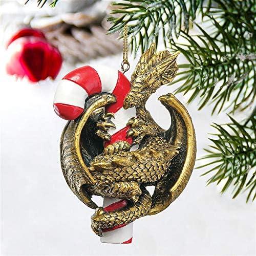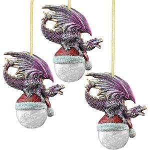 Design Toscano Blitzer the T Rex Dinosaur Christmas Tree Ornament, 5 Inch Long, Cast Stone Resin with Glass Ball, Green Glitter Finish(Celtic Dragon)