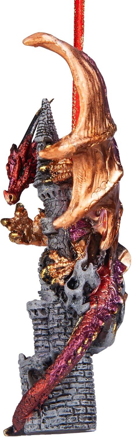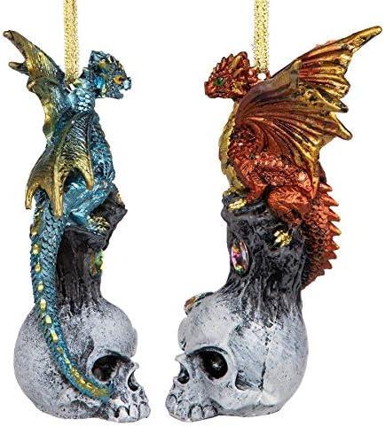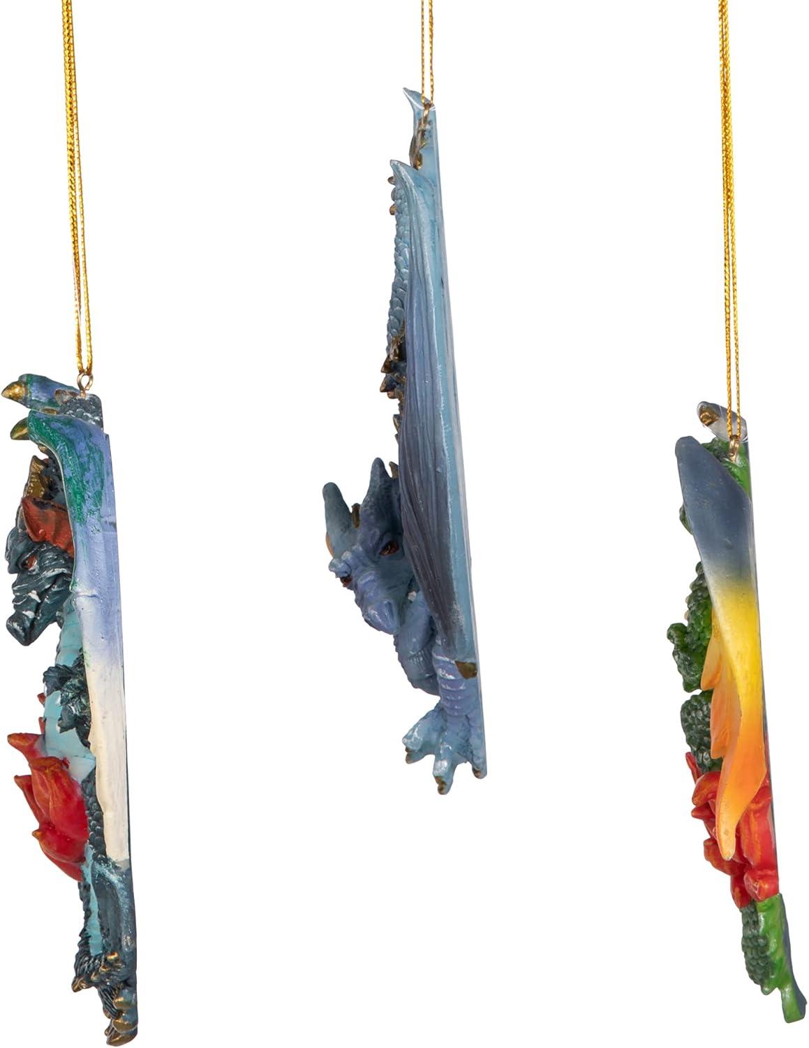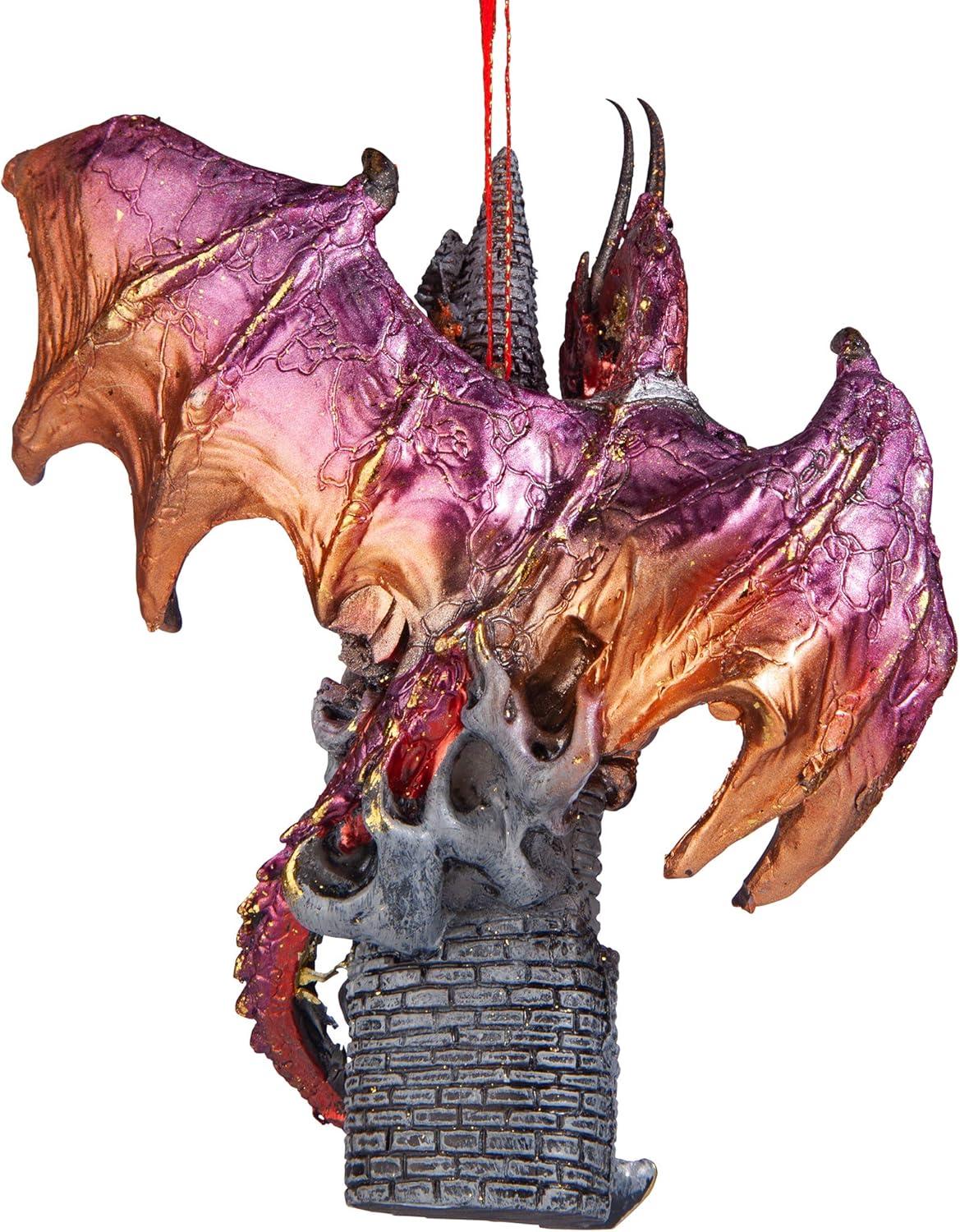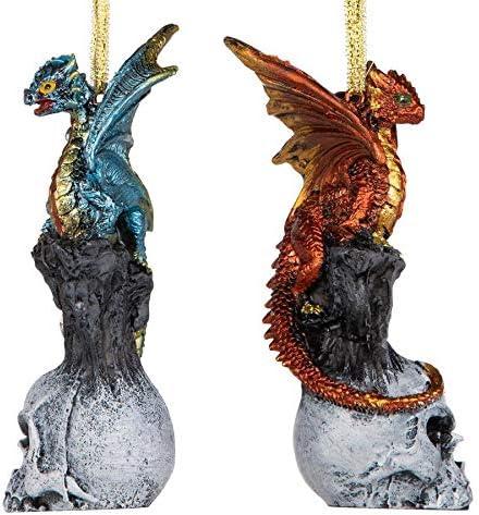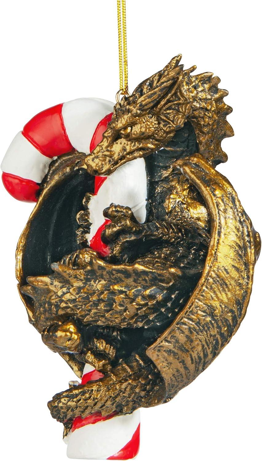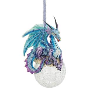 Design Toscano Blitzer the T Rex Dinosaur Christmas Tree Ornament, 5 Inch Long, Cast Stone Resin with Glass Ball, Green Glitter Finish(Celtic Dragon)