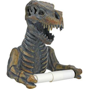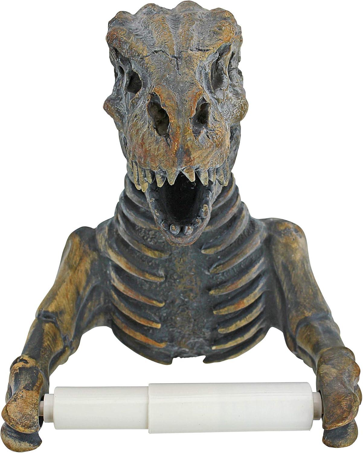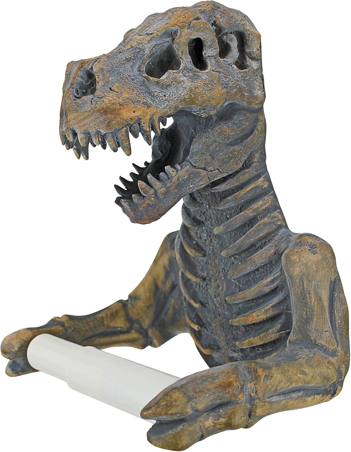 Design Toscano JQ9551 T. Rex Dinosaur Skeleton Bathroom Decor Accessories Toilet Paper Holder, 8 Inches High, Handcast Polyresin, Green Bronze Metallic Finish