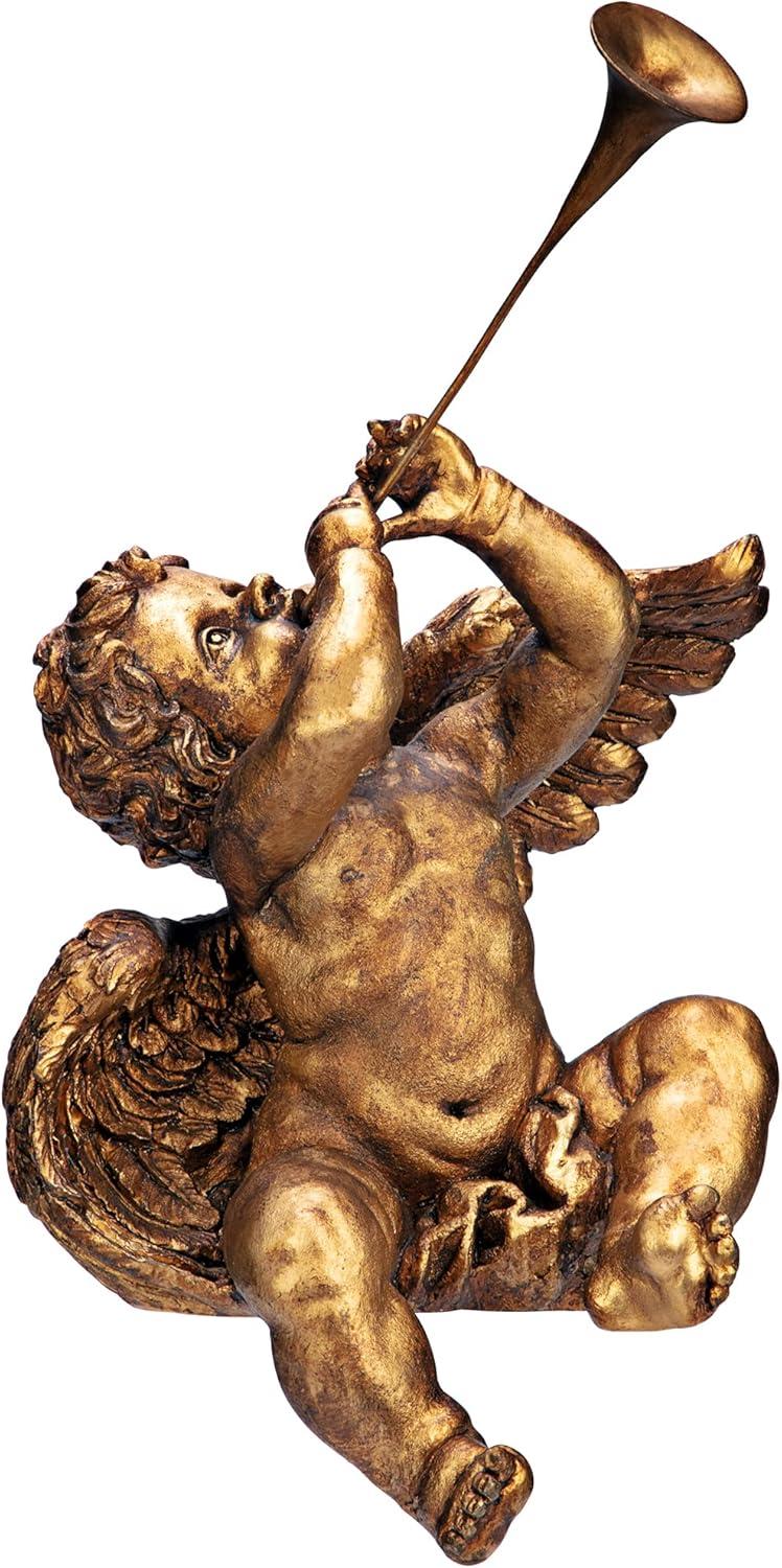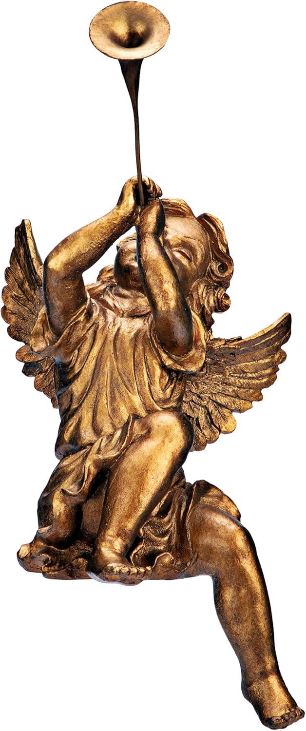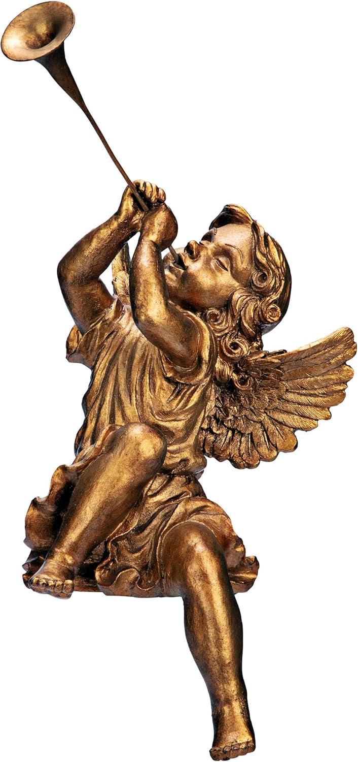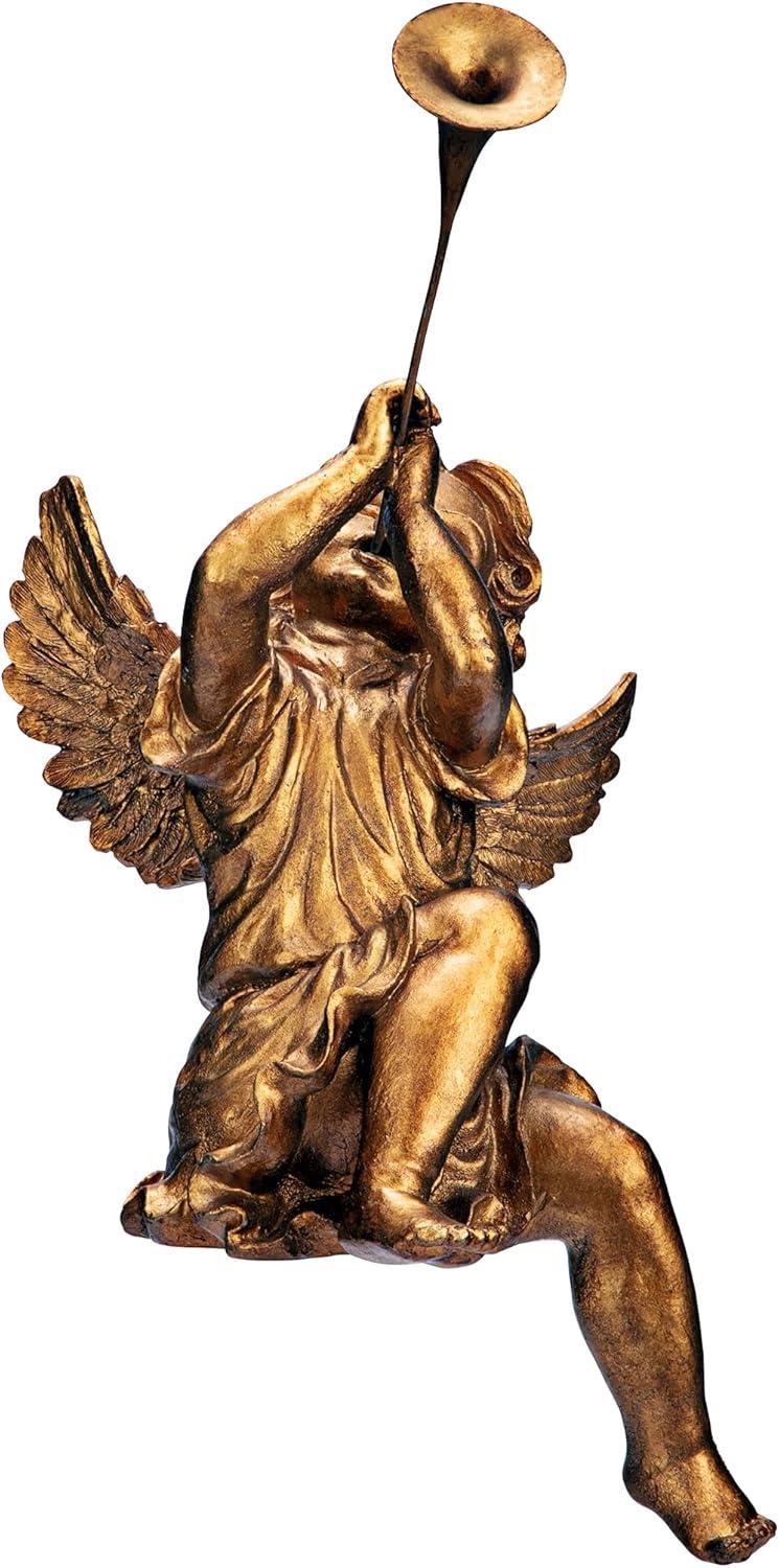 Design Toscano JE930801 Trumpeting Angels of Peter’s Square Holiday Statue Ornaments, Set of Two, Boy & Girl, 7 inches Wide, 13 inches Tall, Handcast Polyresin, Antique Gold Finish(Boy)