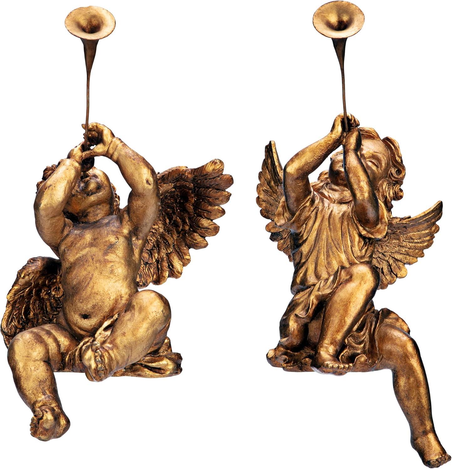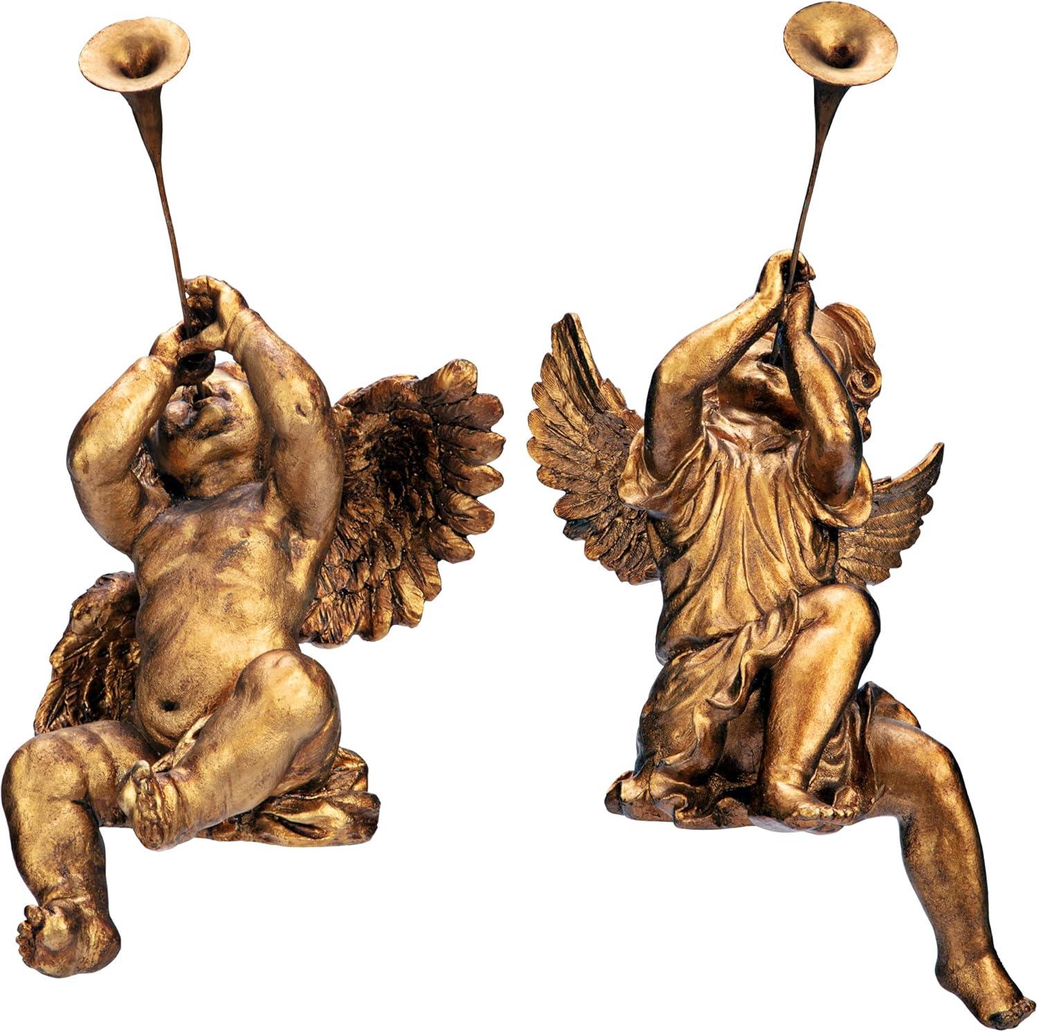 Design Toscano JE930801 Trumpeting Angels of Peter’s Square Holiday Statue Ornaments, Set of Two, Boy & Girl, 7 inches Wide, 13 inches Tall, Handcast Polyresin, Antique Gold Finish(Boy & Girl)