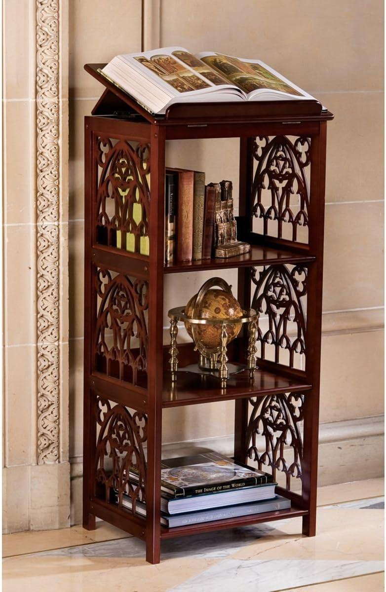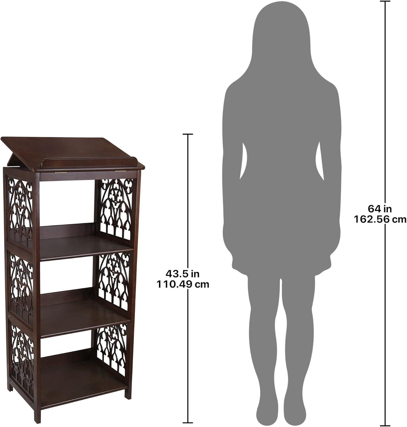 Design Toscano Thomas Aquinas Gothic Tracery Bookstand Library Display Stand, 20 inches wide, 43 inches tall, Hardwood, Walnut Finish