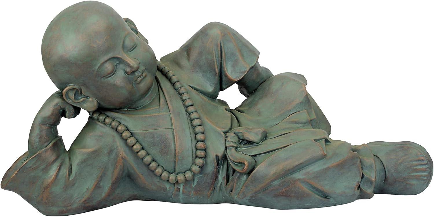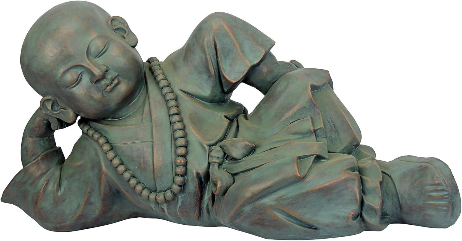 Design Toscano Resting Serene Baby Monk Asian Boy Garden Statue, 24 inches Wide, 12 inches Tall, Cast Stone Resin, Green Bronze Finish(Resting Serene Baby Buddha)