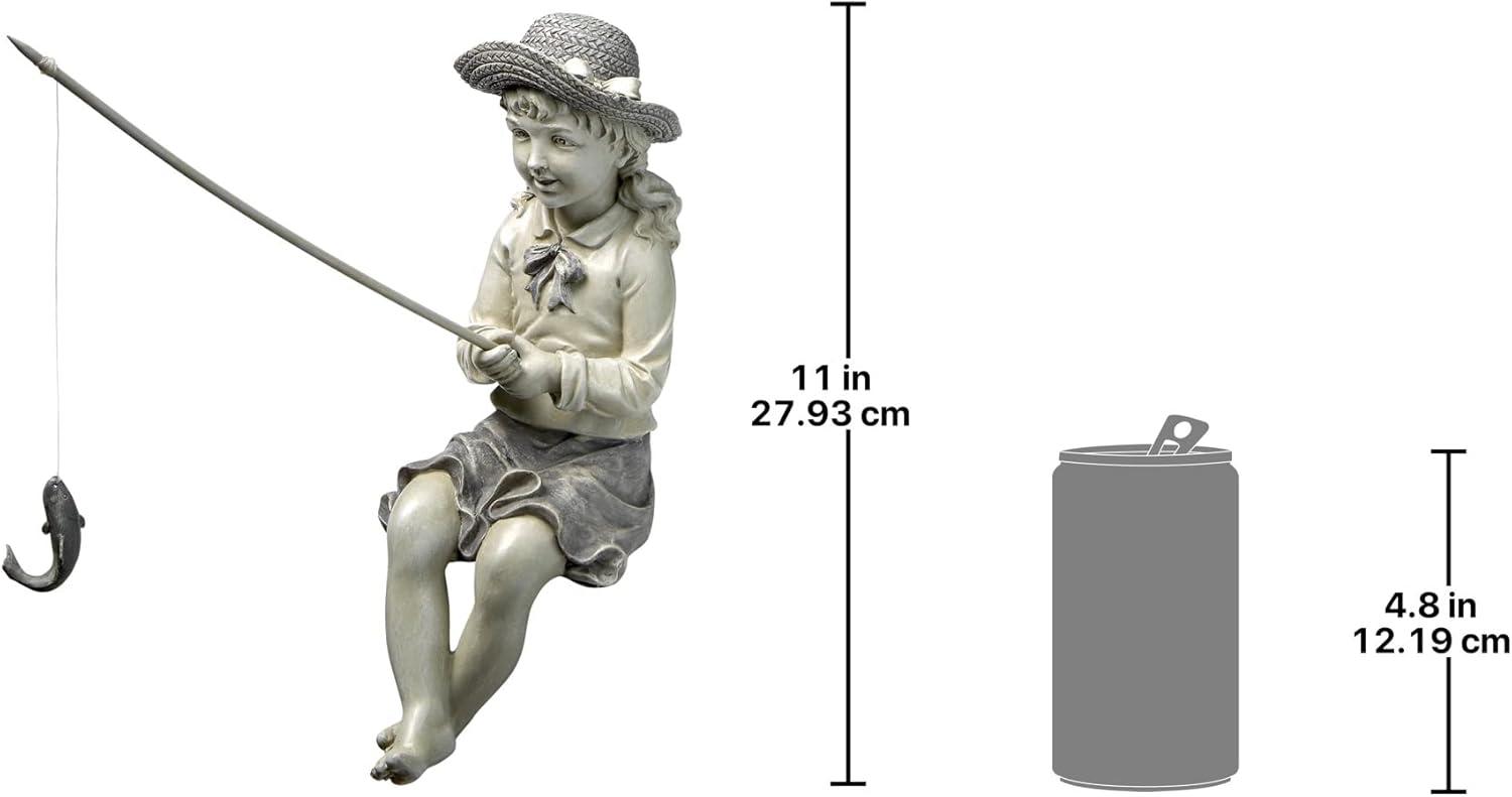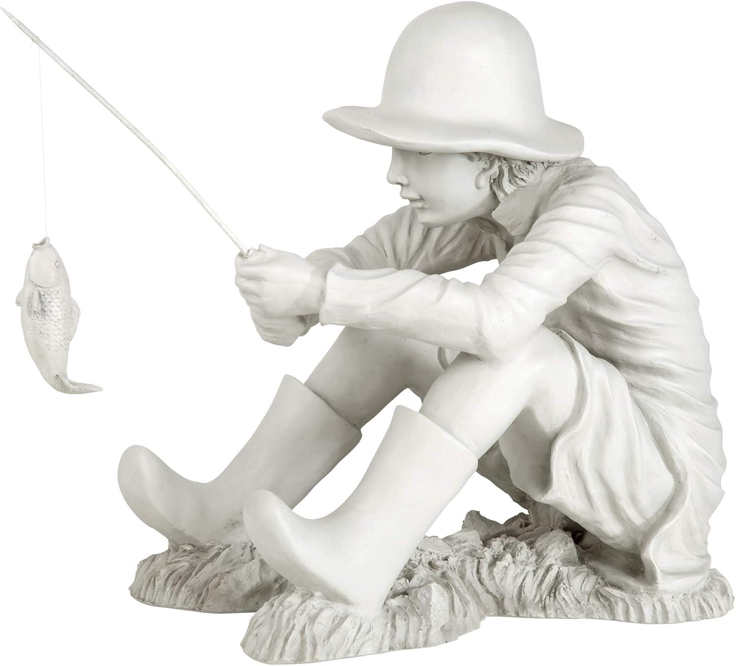 Design Toscano Frederic the Little Fisherman of Avignon Boy Fishing Garden Statue, 15 Inch Tall, Cast Stone Resin, Two Tone Stone Finish(Medium Nellies Big Catch)