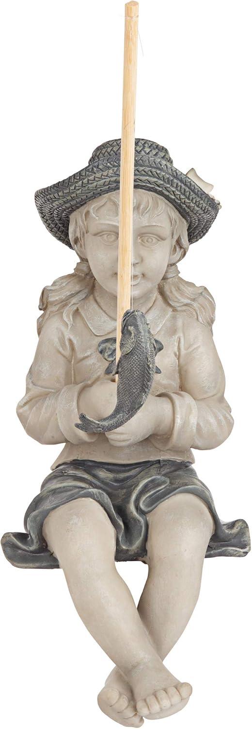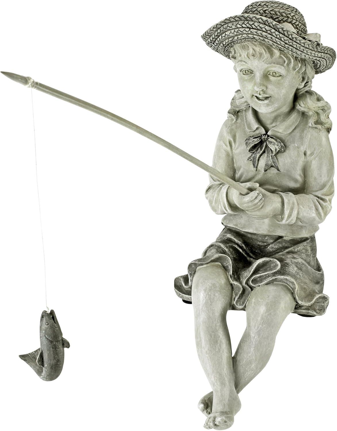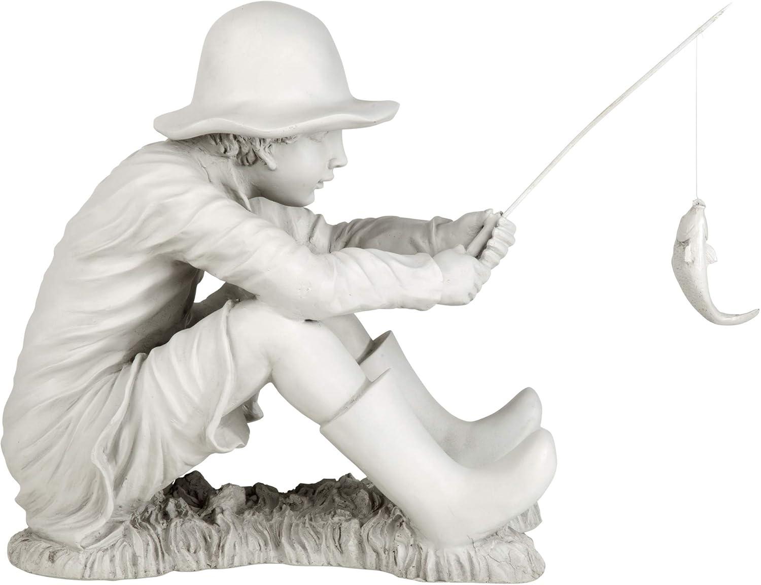 Design Toscano Frederic the Little Fisherman of Avignon Boy Fishing Garden Statue, 15 Inch Tall, Cast Stone Resin, Two Tone Stone Finish(Frederic the Little Fisherman)