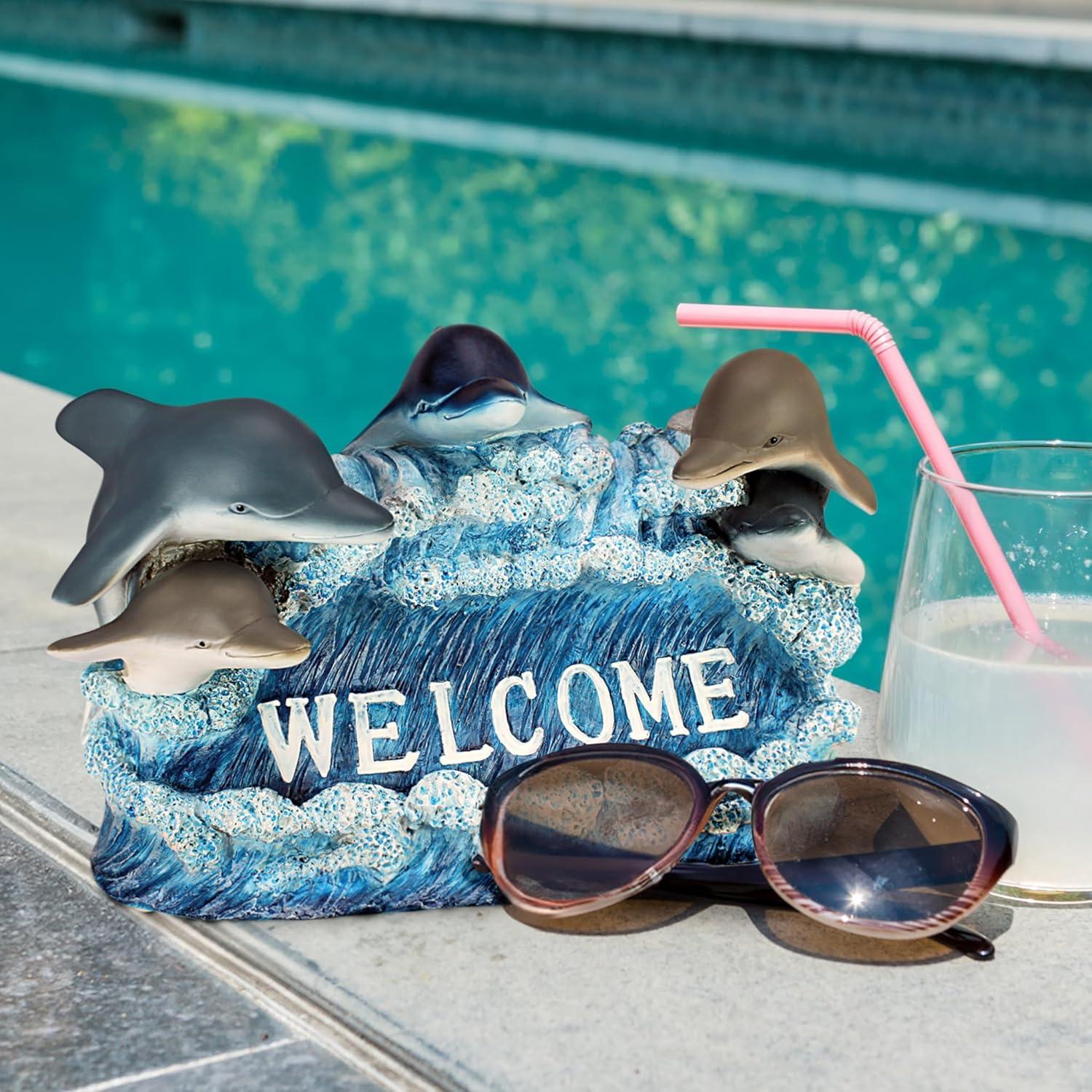 Design Toscano QL94281 Knothole Welcome Gnomes Garden Tree Sculptures, full color(Dolphin)