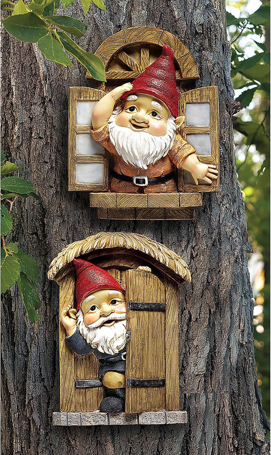 Design Toscano QL94281 Knothole Welcome Gnomes Garden Tree Sculptures, full color(Knothole Welcome Gnomes)