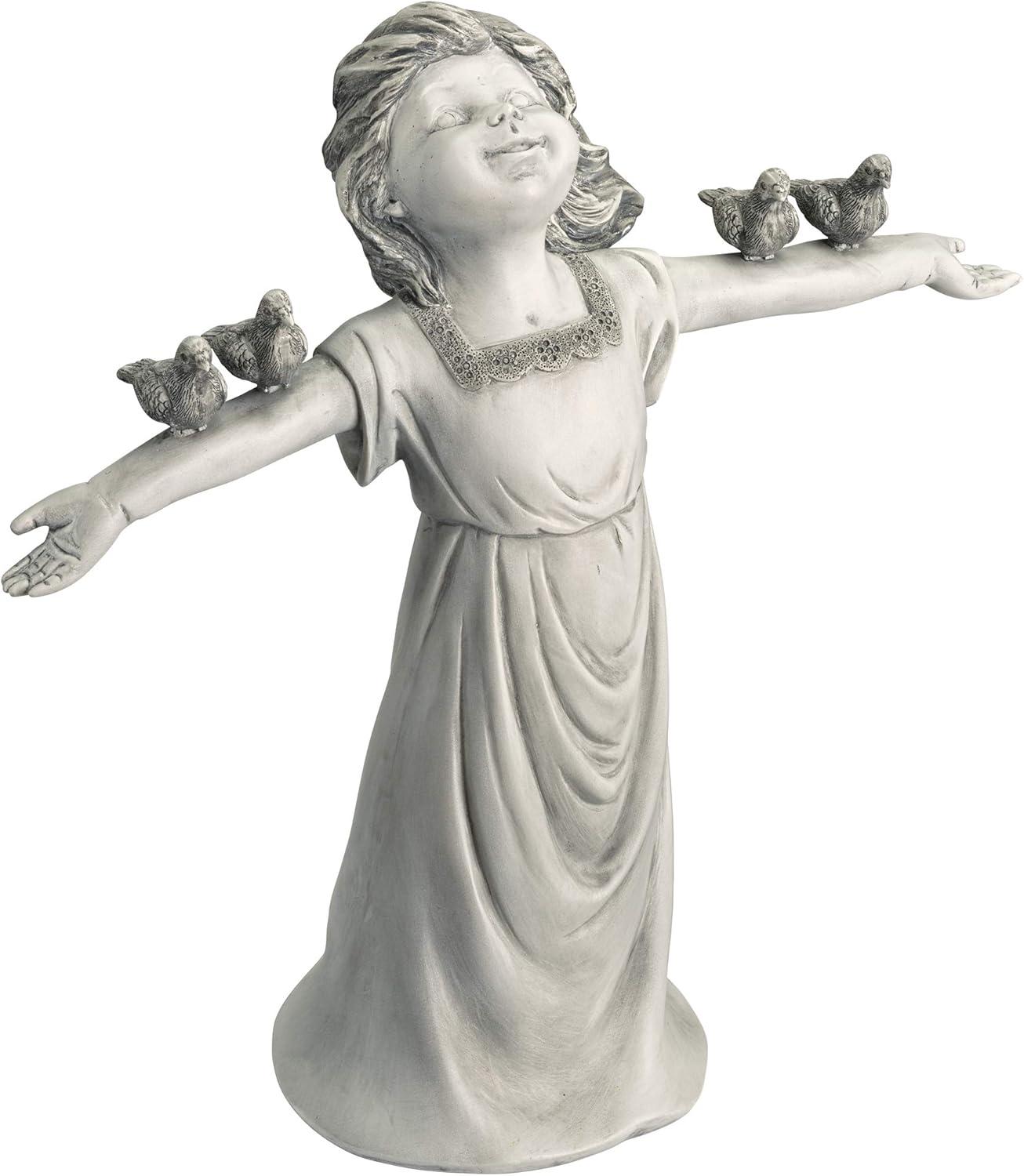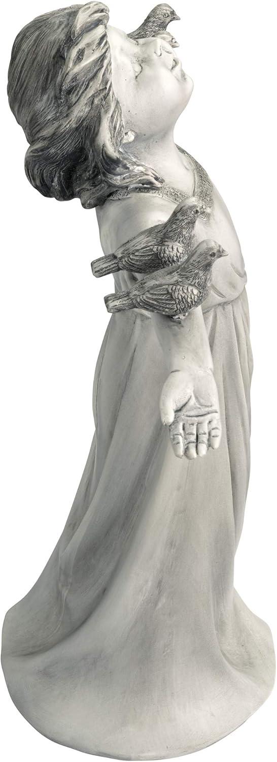 Design Toscano Basking in Glory Little Girl with Birds Outdoor Garden Statue, Large, 29 inches tall, Cast Stone Resin, Two Tone Stone Finish(Handcast Polyresin Two Tone Stone Finish)