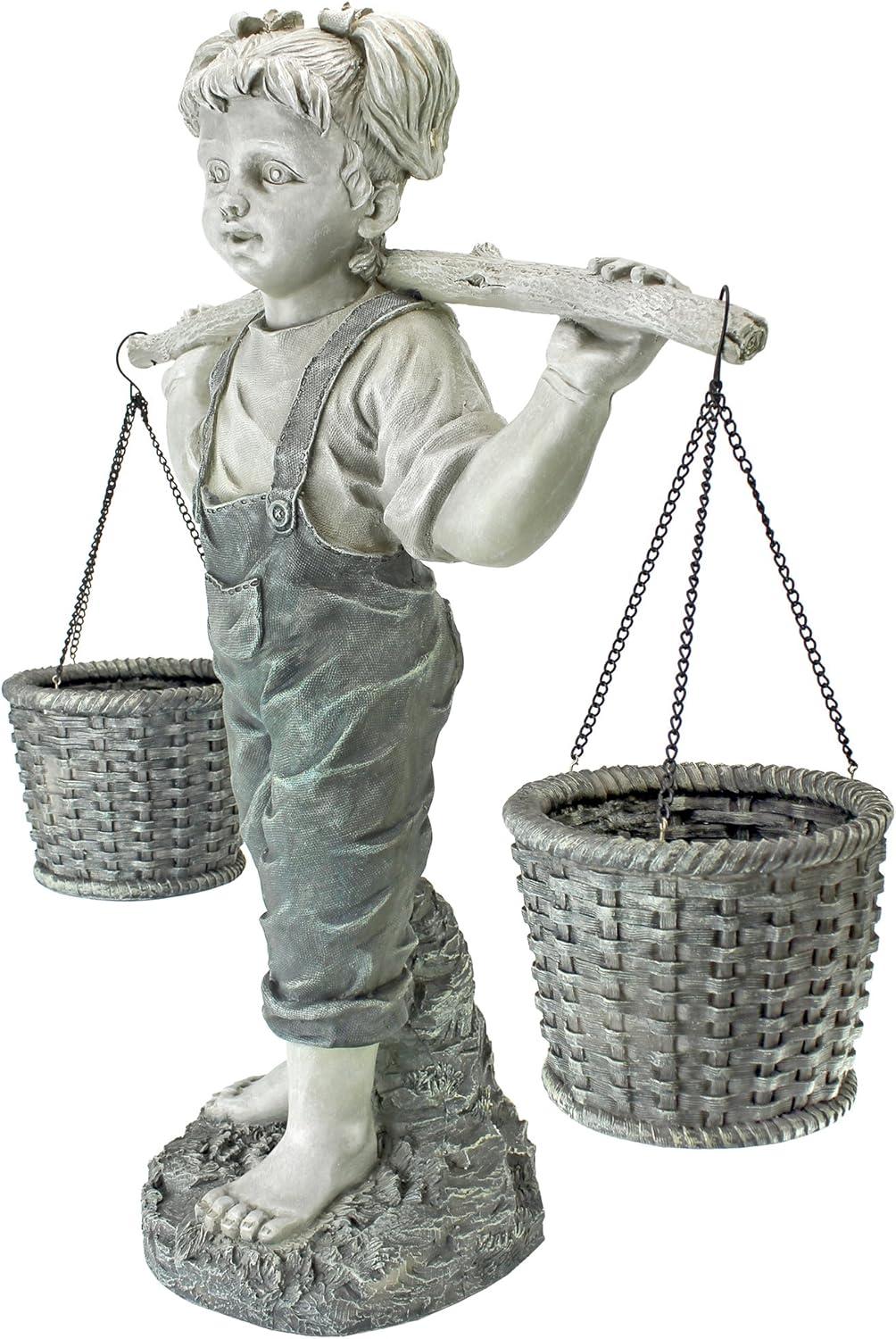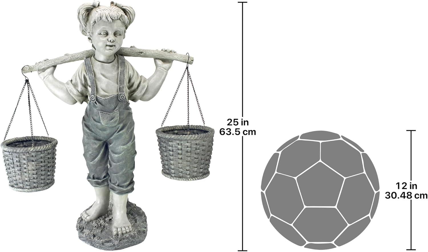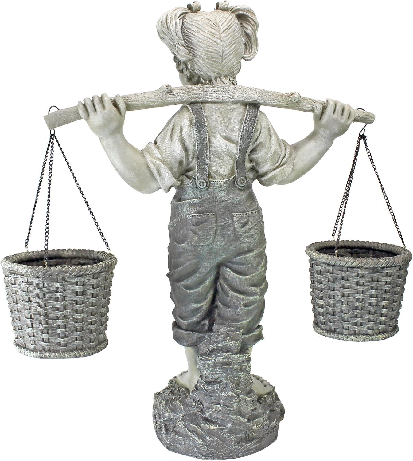 Design Toscano Flowers for Felicity Little Girl Garden Statue with Basket Planters, Medium, 25 Inches Tall, Cast Stone Resin, Two Tone Stone Finish