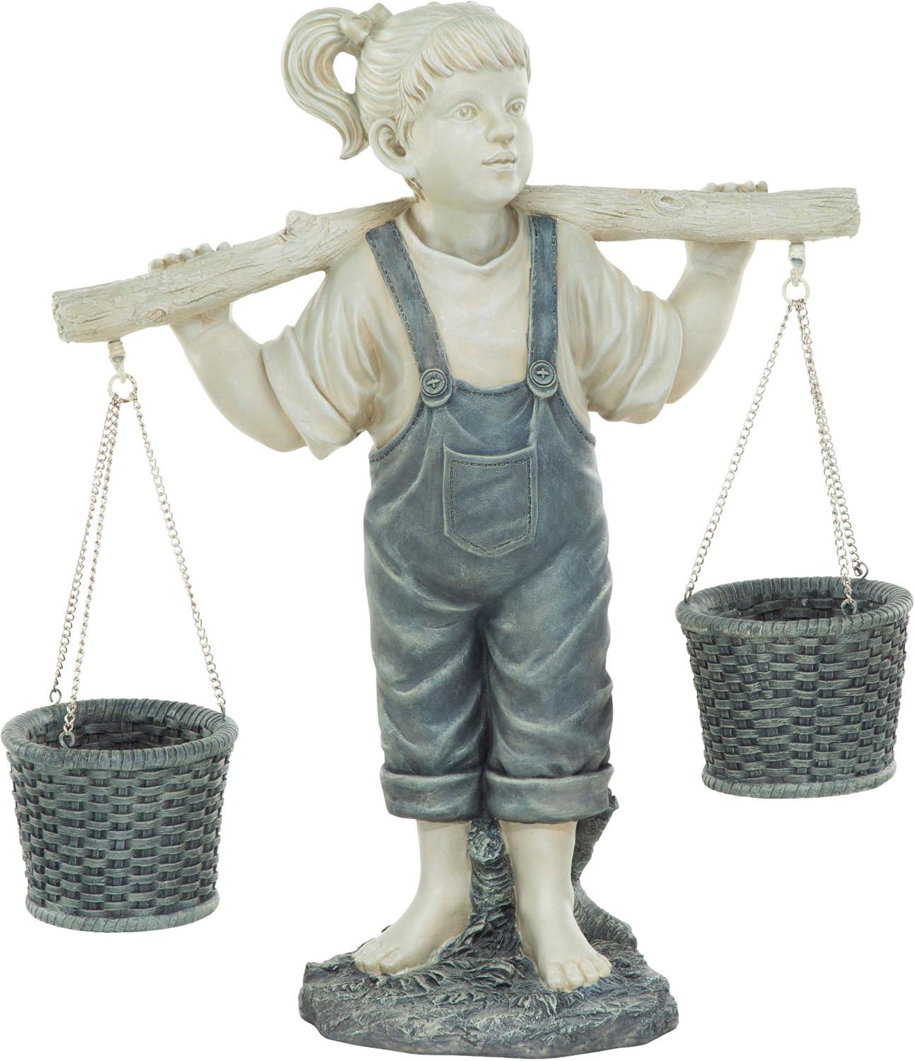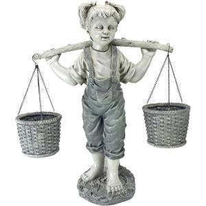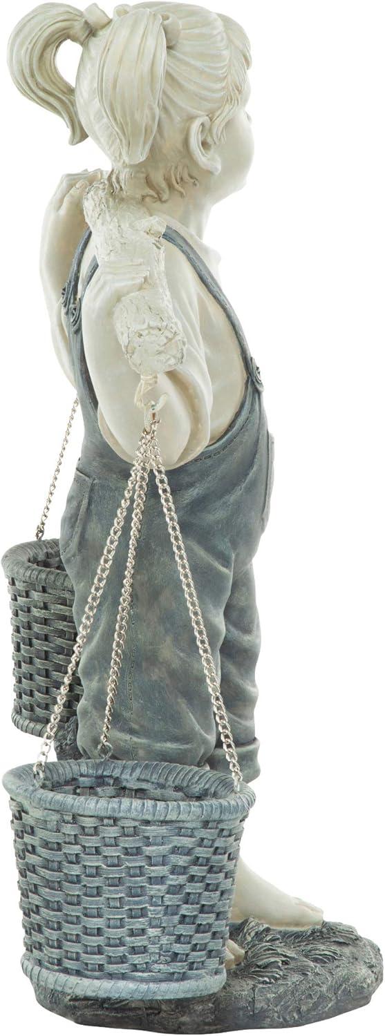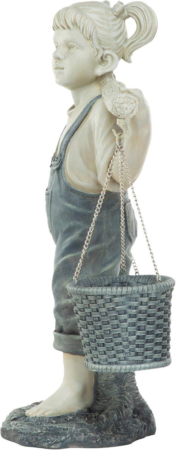 Design Toscano Flowers for Felicity Little Girl Garden Statue with Basket Planters, Medium, 25 Inches Tall, Cast Stone Resin, Two Tone Stone Finish