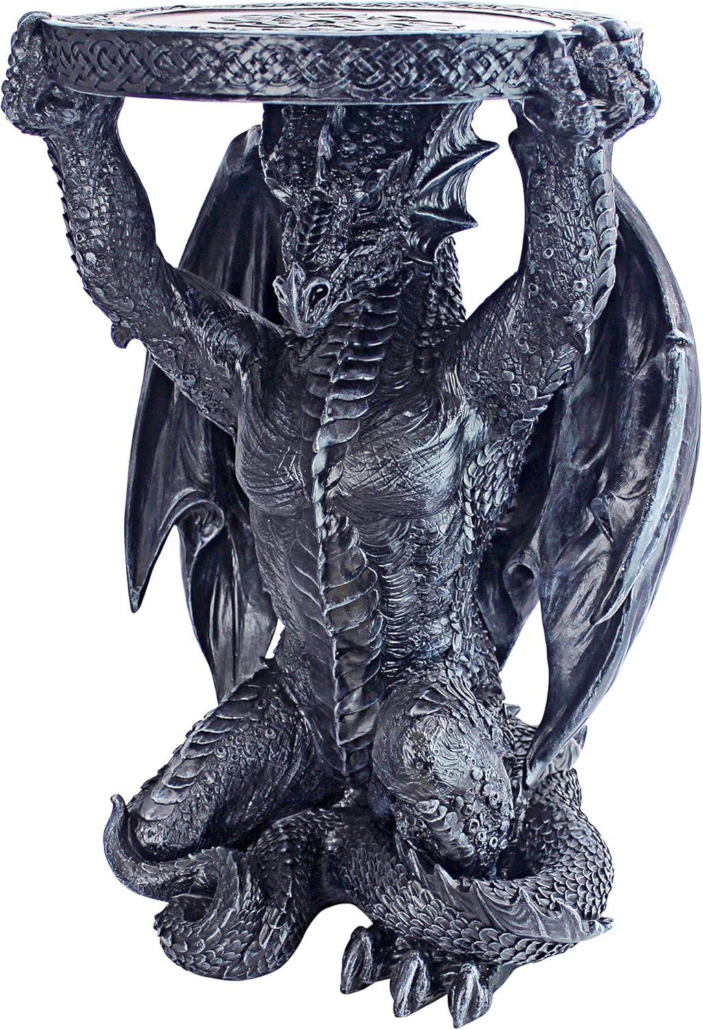 Design Toscano The Gothic Dragon of Netherley Boggs Sculptural Side Table, 14.5 in x 13.5 in x 20.5 in, Greystone Finish