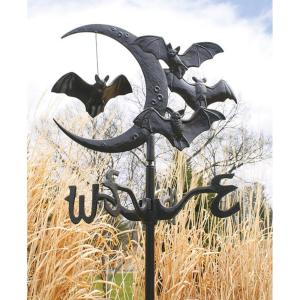 Design Toscano Crescent moon Vampire Bats Metal Weathervane: Roof Mount(Witch Garden Stake)