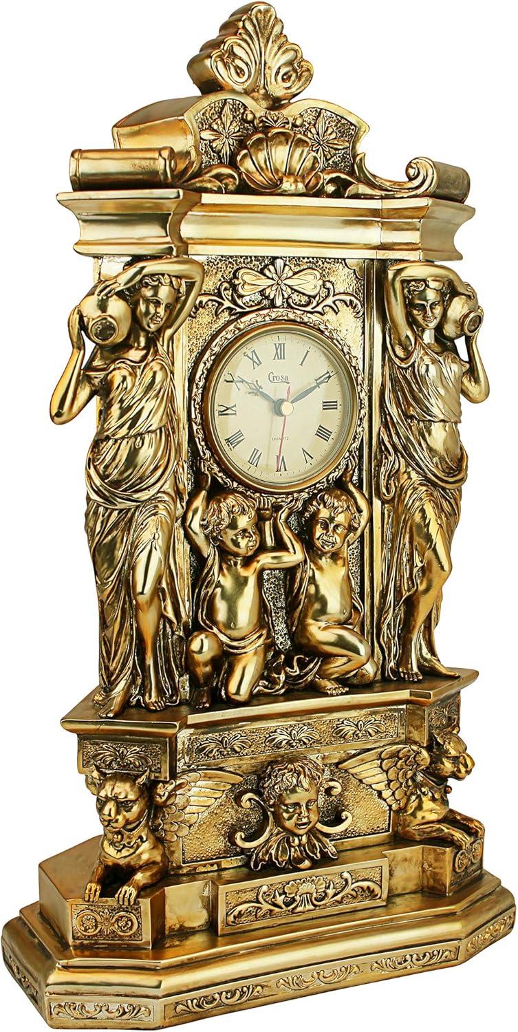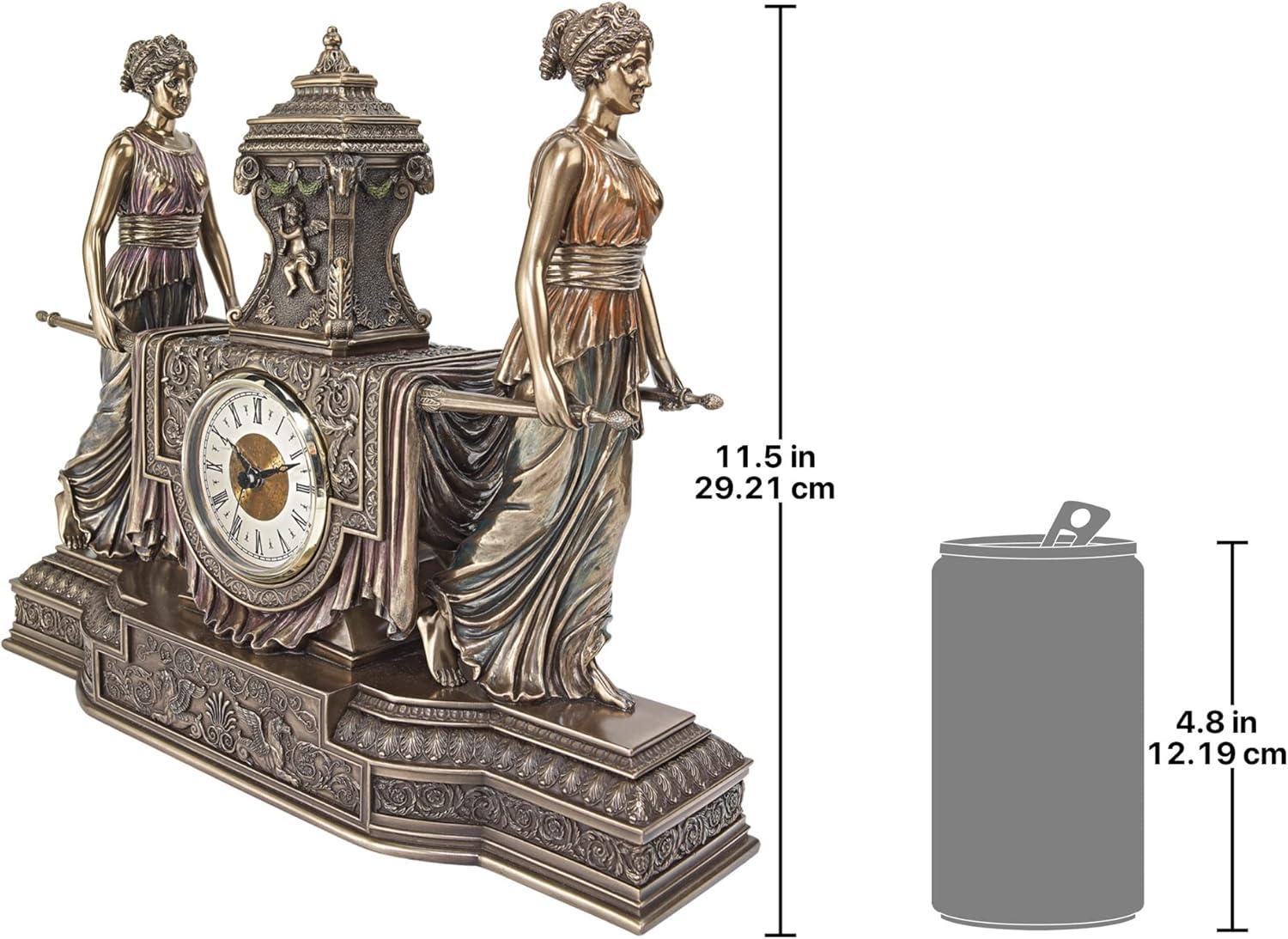 Design Toscano Versailles Maidens Mantel Clock Statue, 14 Inch, Polyresin, Bronze Finish