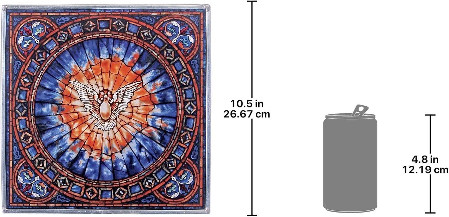 Design Toscano GM1018 Tiffany’s Holy Dove of Peace Art Glass Square Suncatcher Window Panel, 10 inches wide, 10 inches tall, Stained Glass, Blue Enamel