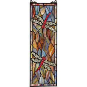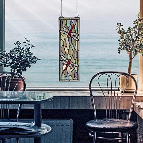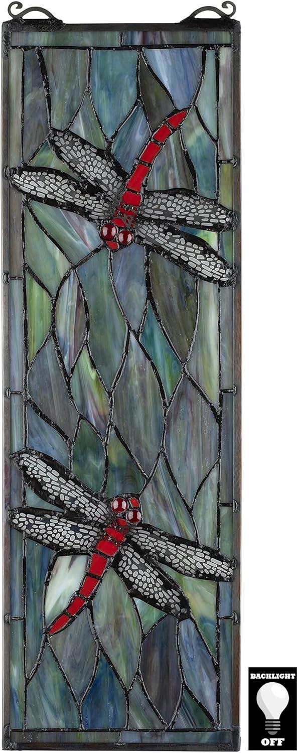 Design Toscano TF53502 Tiffany Style Dragonfly Stained Glass Window Hanging Panel, 21 Inch, Smokey Blue