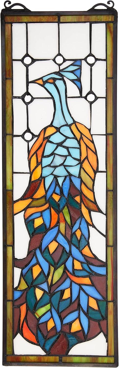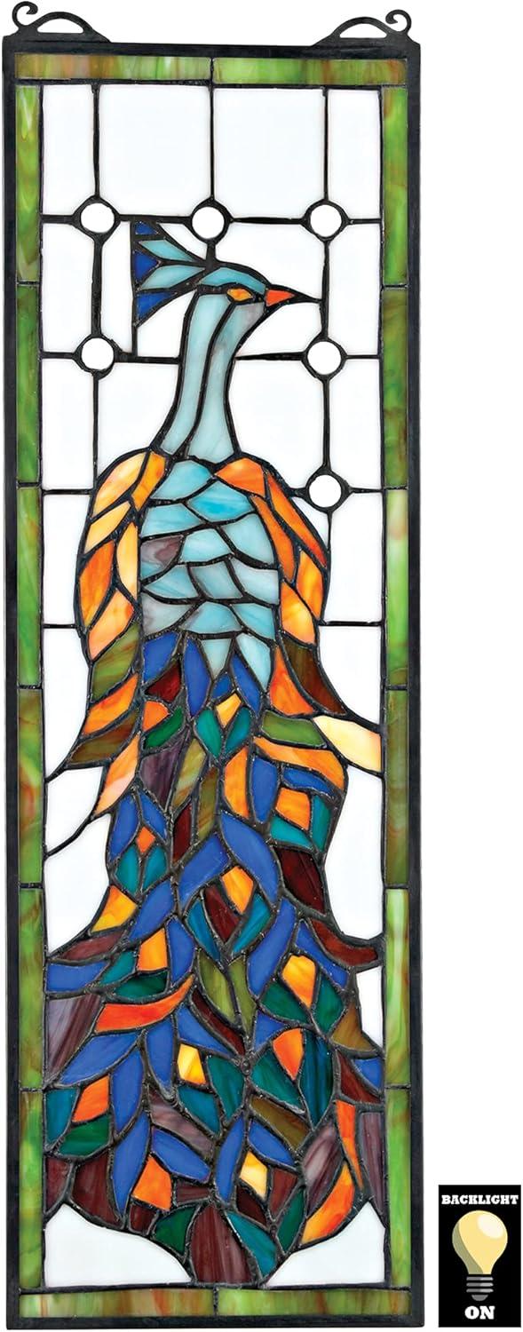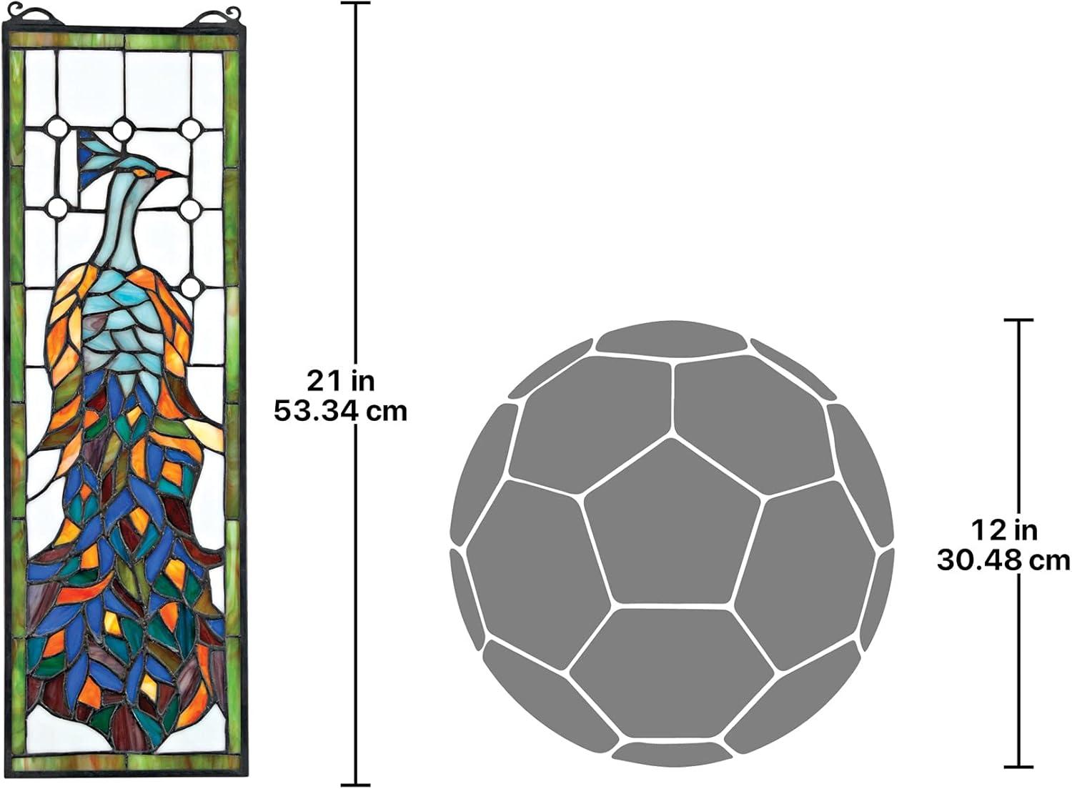 Design Toscano Stained Glass Panel -Peacock’s Sunset Stained Glass Window Hangings – Window Treatments, 10.00″ x 0.50″(Garden)