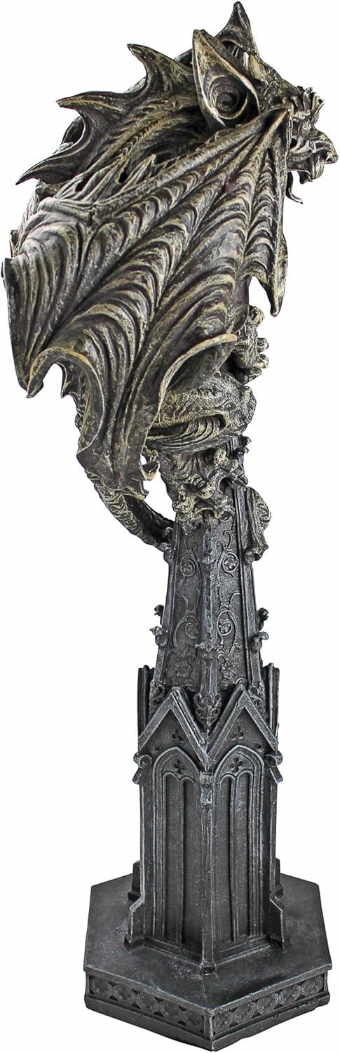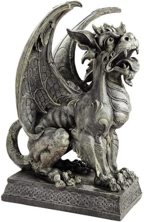 Design Toscano Castle Dragon Gothic Decor Decorative Bookend Statues, 8 Inch, Set of Two, Polyresin, Grey Stone(Single)