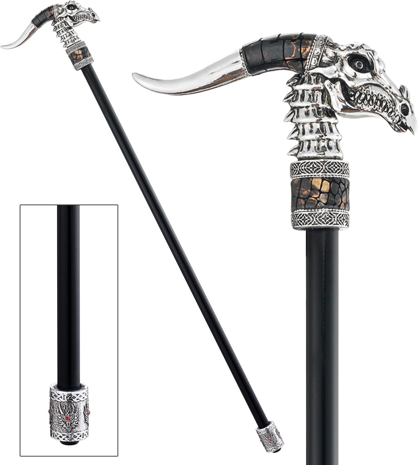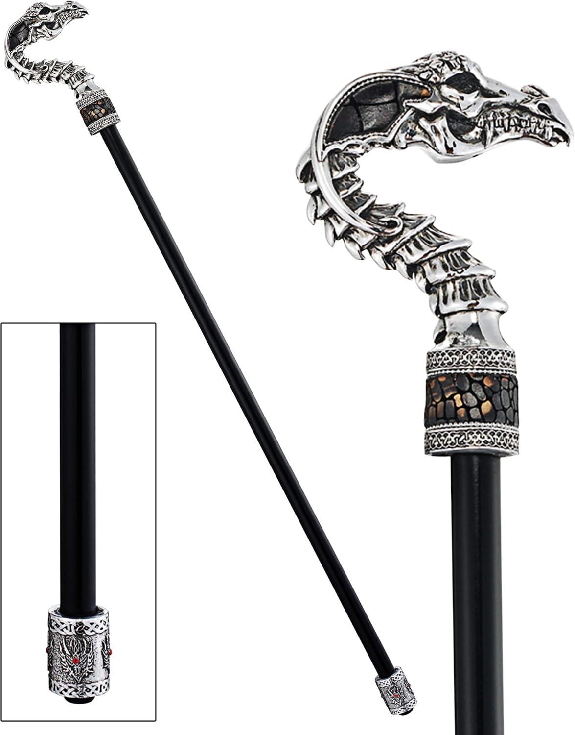 Design Toscano Dragonsthorne Nebula Dragon Gothic Walking Stick Swagger Cane, 38 Inch, Polyresin, Silver and Black(Set of 2)