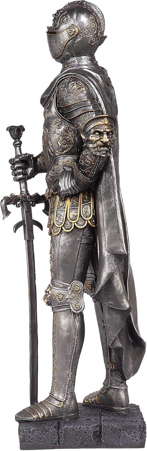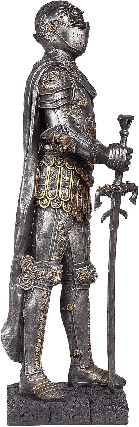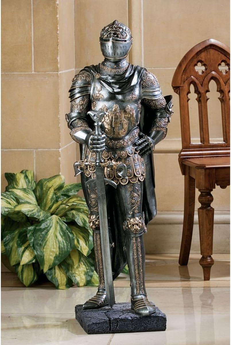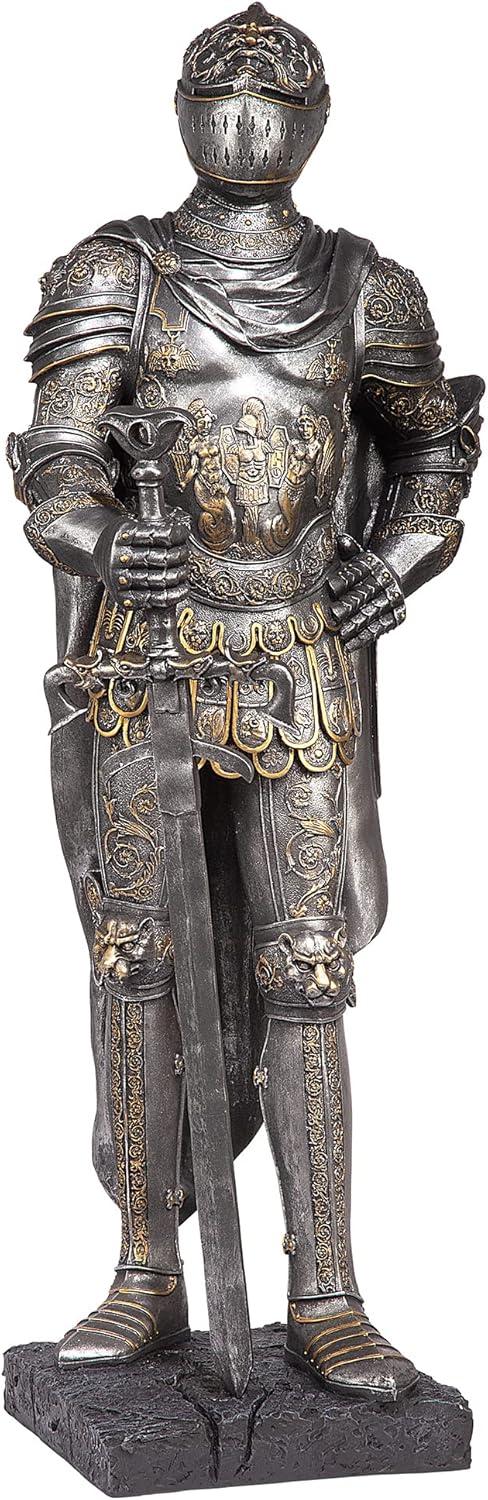 Design Toscano King’s Guard Medieval Decor Half Scale Knight Armor Gothic Statue, 39 Inch Tall, Cast Stone Resin, Metallic Finish with Faux Stone Base