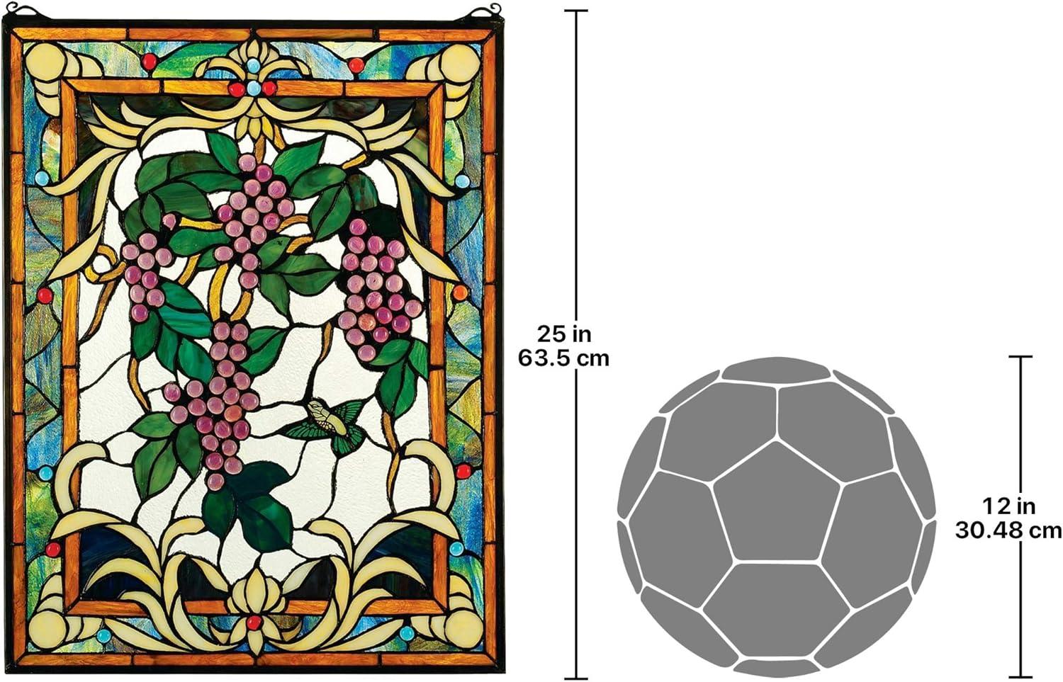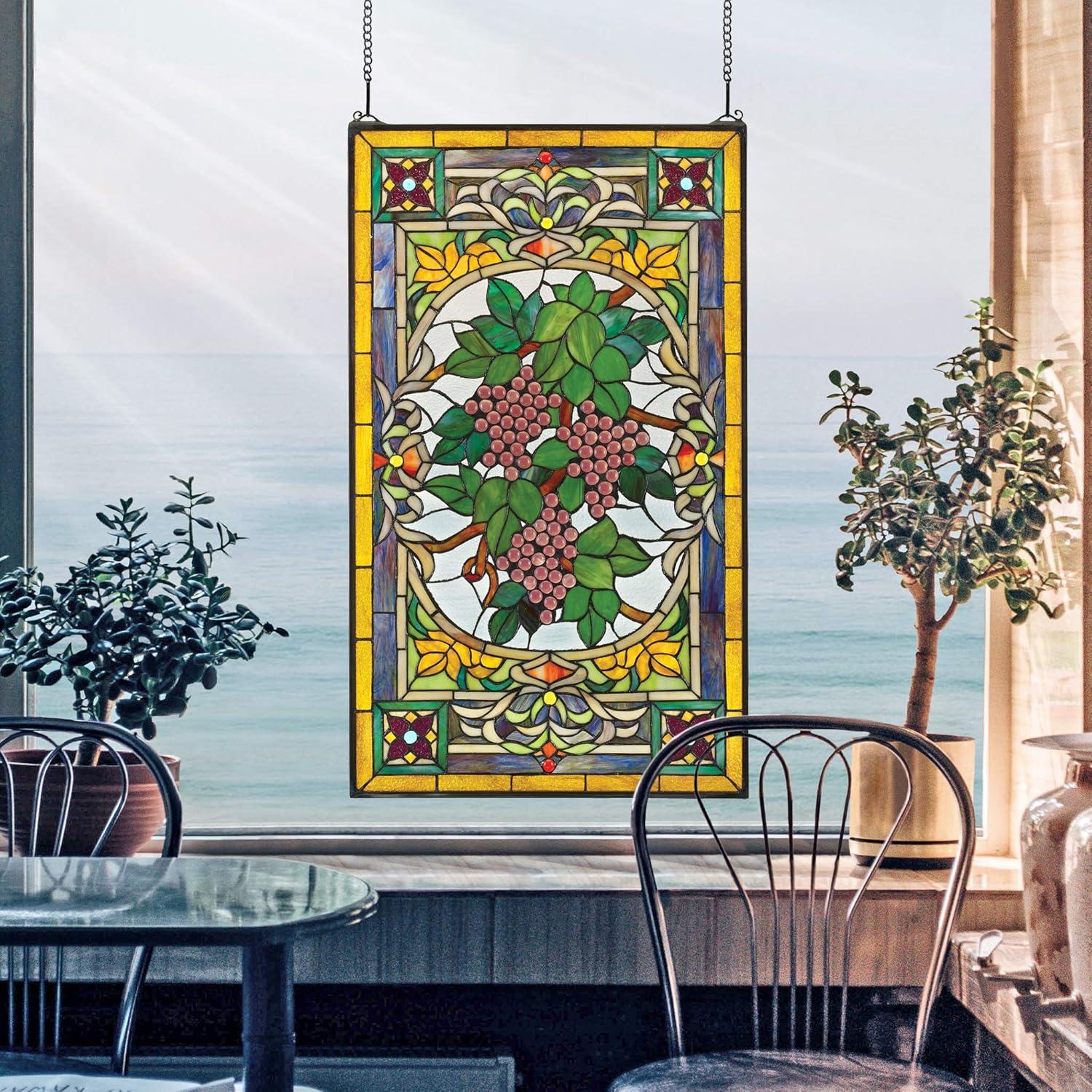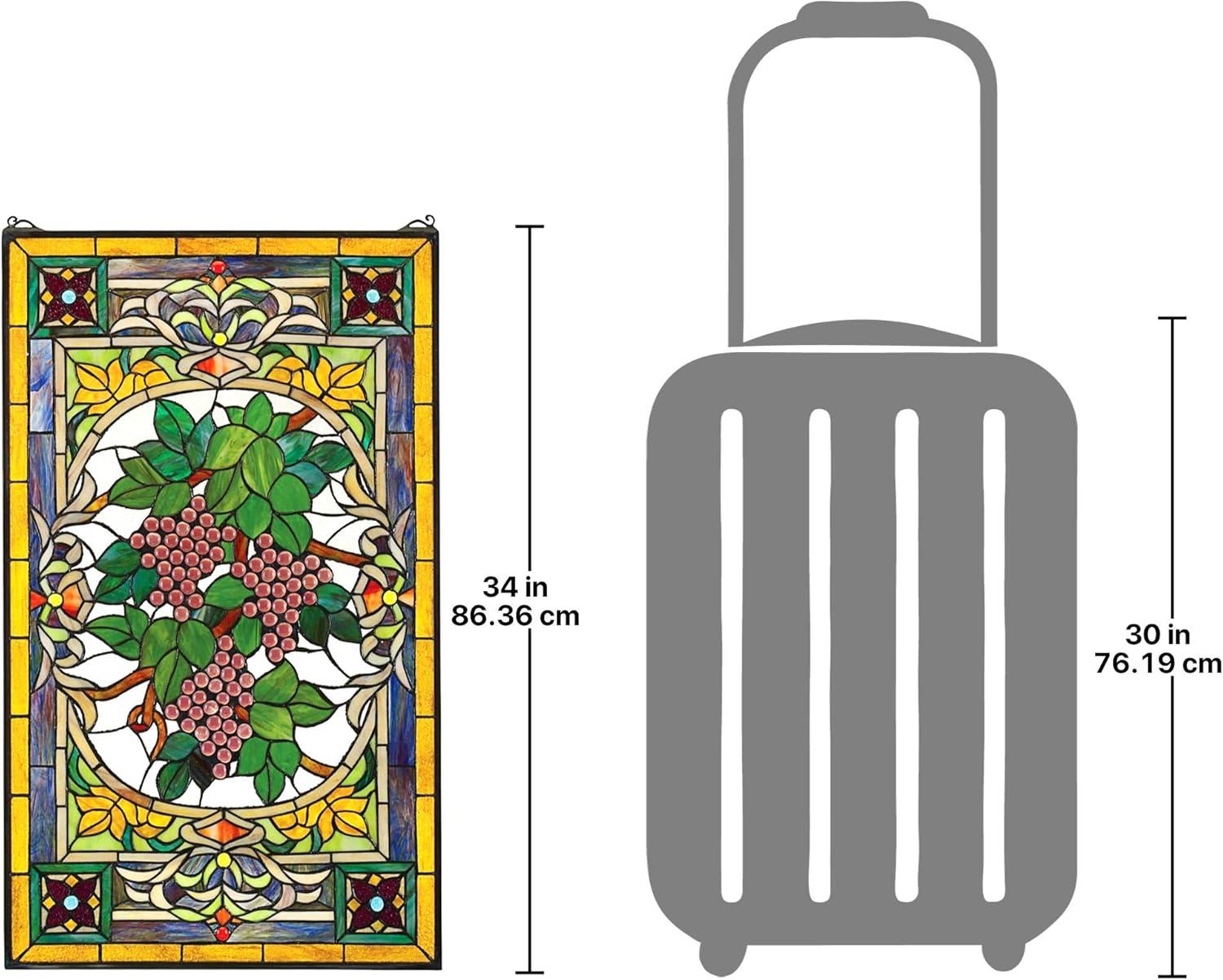 Design Toscano Blackstone Hall Stained Glass Window Hanging Panel with Scrolled Brackets, 9 Inches Wide, 0 Inches Deep, 35 Inches High, Stained Glass, Full Color Finish(Grapes On the Vine)