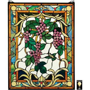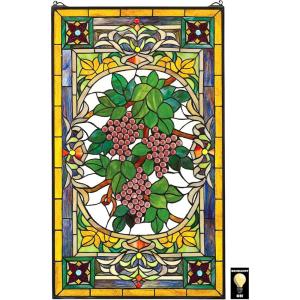 Design Toscano Stained Glass Panel – Fruit of the Vine Grape Stained Glass Window Hangings – Window Treatments, Grapes With Amber Border(Fruit Of The Vine Stained Glass Window)