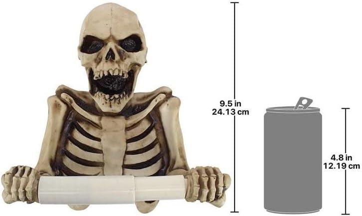 Our skeleton funny toilet paper holder measures 8″Wx5″Dx9½”H. 3 lbs. and includes a spring-loaded roller.