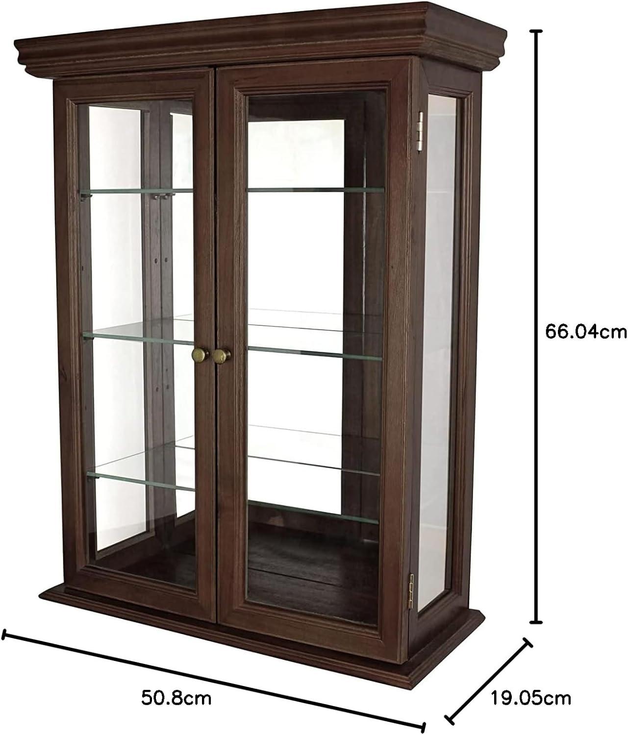 A peaked cap and acorn pediment accent our clean-lined, mirror backed curio cabinet that features two removable curio glass shelves and glass side panels to shed maximum light on your prized possessions. Crafted of solid hardwood, hand-painted in a a rich lily white, it boasts two framed glass doors that open separately for unobstructed viewing from all sides and curio cabinet hardware. Ready to mount on the wall or set on a console or mantle. Our Design Toscano-exclusive curio cabinet boasts a hand finished lily white hue to accent any decor and ample space that will draw all eyes to your statues, enameled eggs and other cherished heirloom collectibles.