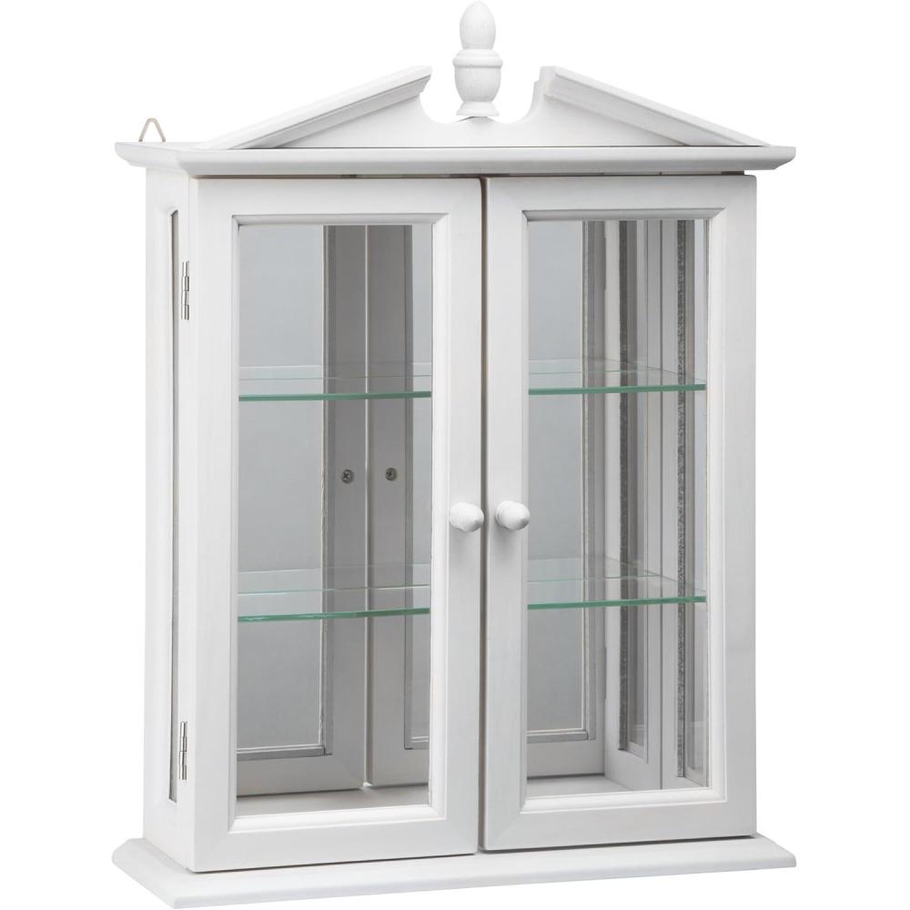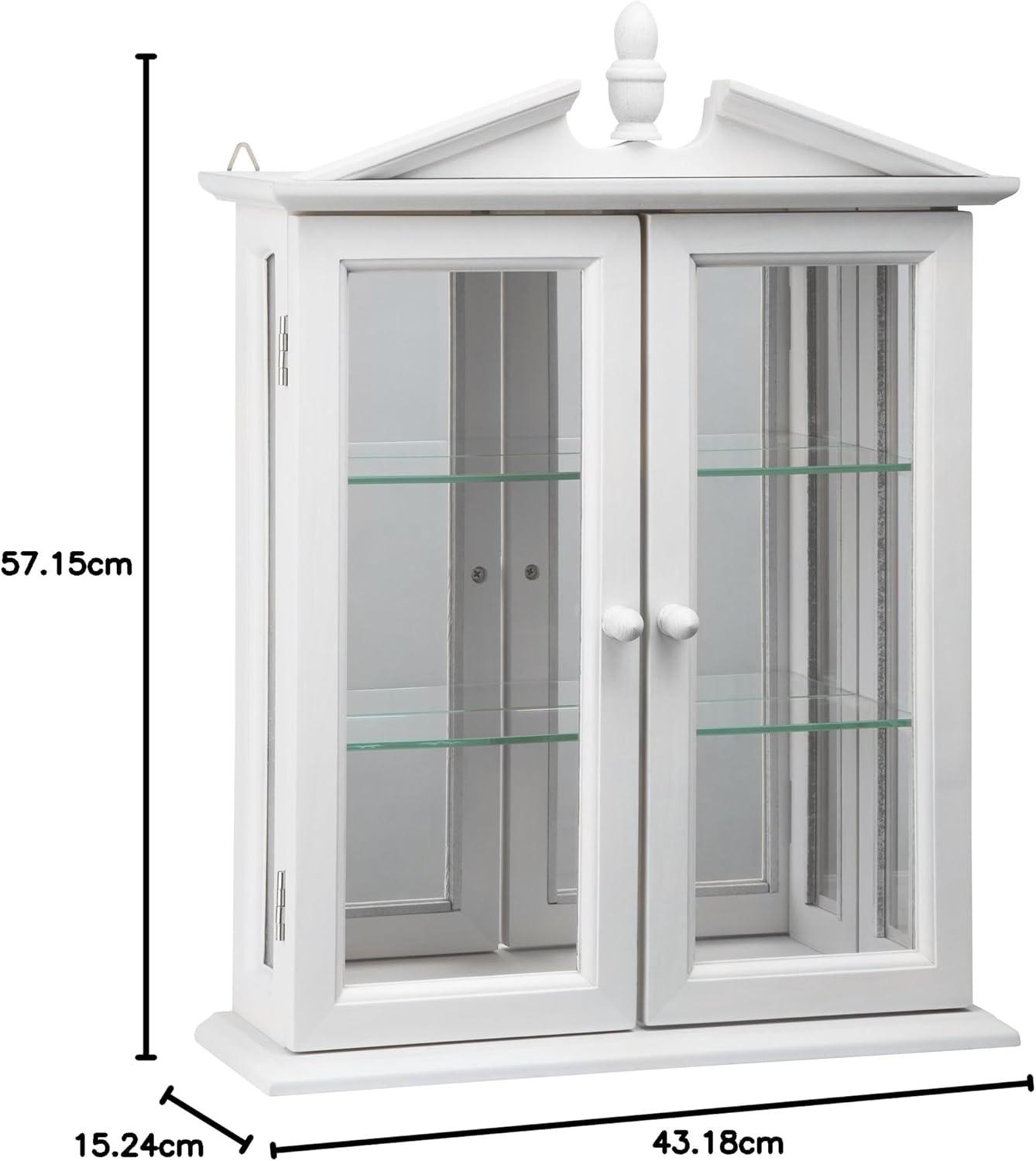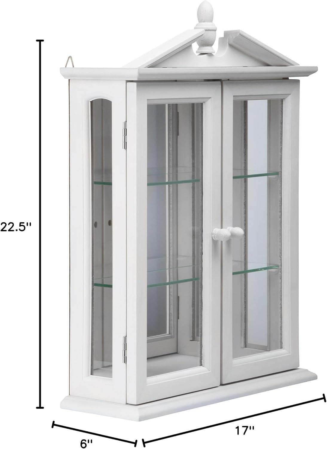 A peaked cap and acorn pediment accent our clean-lined, mirror backed curio cabinet that features two removable curio glass shelves and glass side panels to shed maximum light on your prized possessions. Crafted of solid hardwood, hand-painted in a a rich lily white, it boasts two framed glass doors that open separately for unobstructed viewing from all sides and curio cabinet hardware. Ready to mount on the wall or set on a console or mantle. Our Design Toscano-exclusive curio cabinet boasts a hand finished lily white hue to accent any decor and ample space that will draw all eyes to your statues, enameled eggs and other cherished heirloom collectibles.