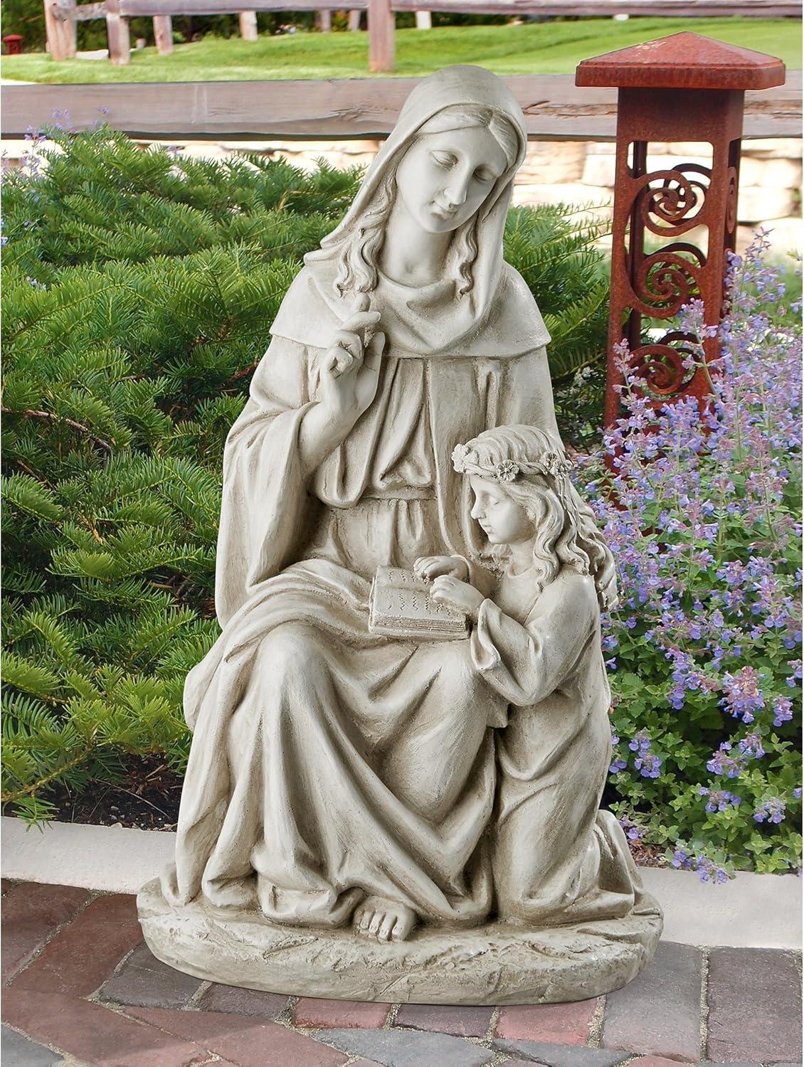 Design Toscano Anne with Young Mother Mary Holy Religious Garden Statue, 12 inches wide, 21 inches tall, Cast Stone Resin, Antique Stone Finish