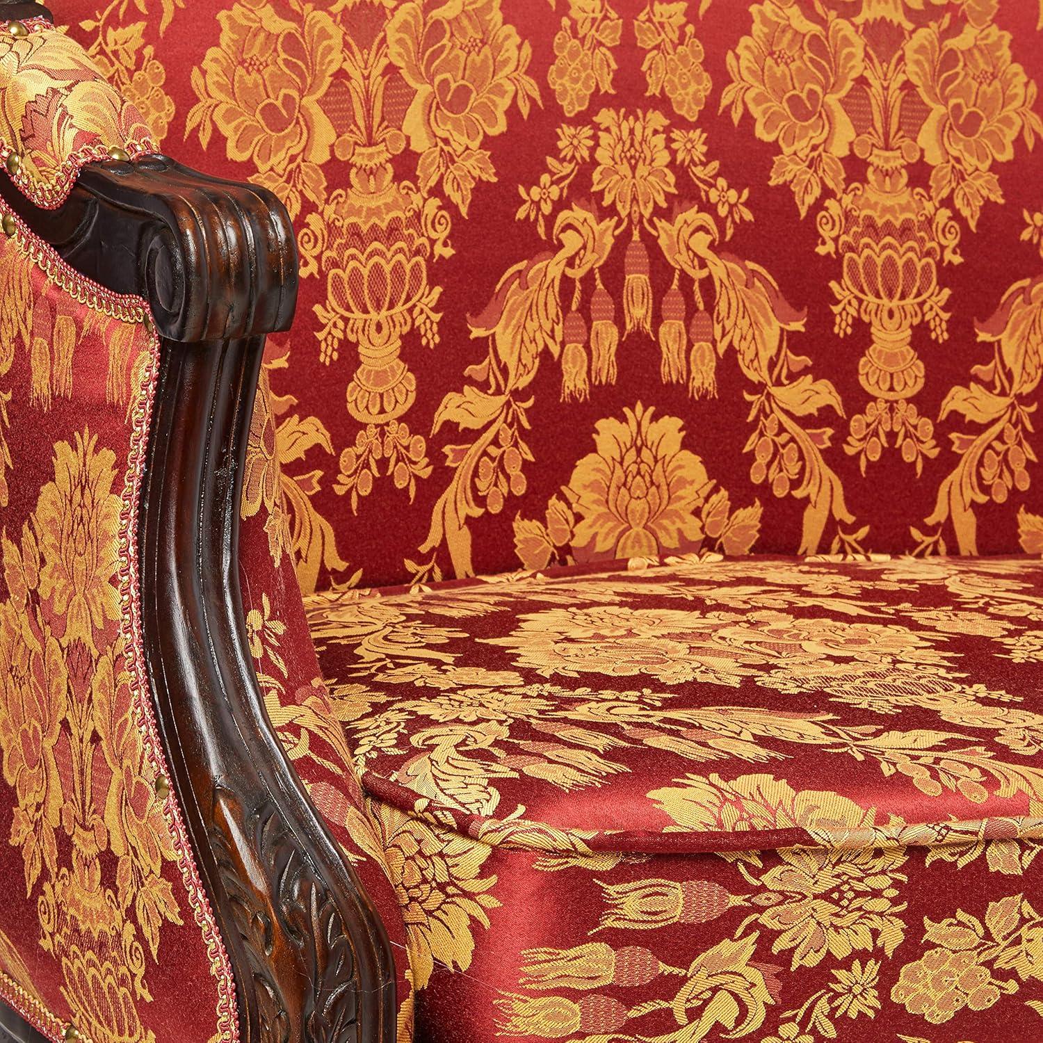 If you simply sink into the perfectly plush comfort of the blushed floral jacquard upholstery with gold brocade trim, you'll miss the fancy detailing & richly hand-carved designs in this loveseat's floral skirt & pediment top. From its padded, hand-tacked armrests to its shapely carved legs, our exclusive, hardwood-framed Couch is true French salon style perfectly sized for a lover's niche. 45″Wx32″dx40″h. 40 lbs.