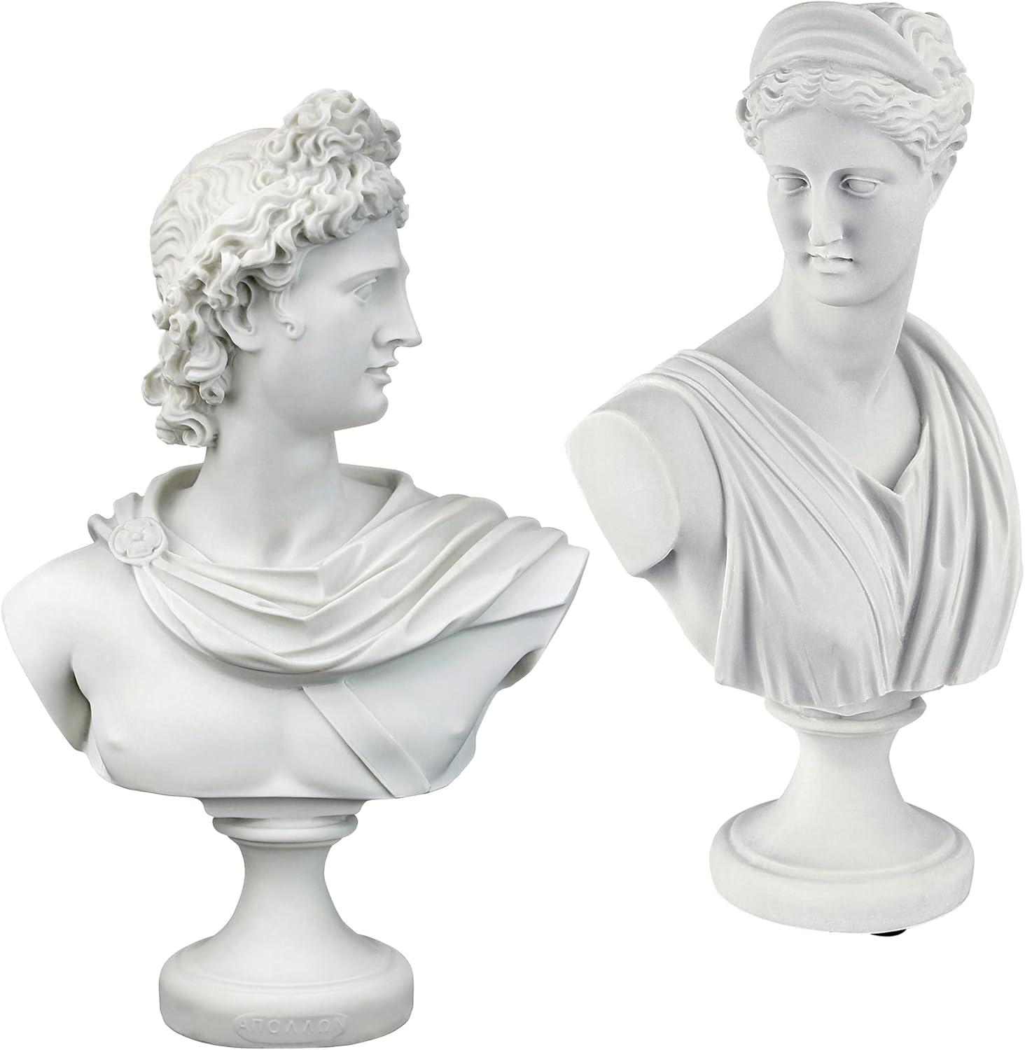 Design Toscano Apollo Belvedere Bust Statue, Single, White Twin(Set of 2)