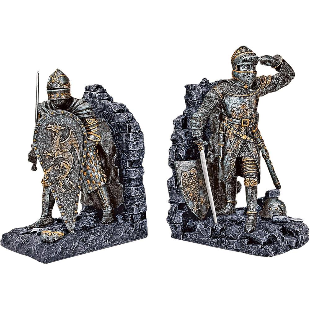 DESIGN TOSCANO GOTHIC DECOR – Exclusive to the Design Toscano brand, this pair of decorative Arthurian book ends will guard your Knights of Camelot, Gothic fantasy or Templar Knight history books in a home library