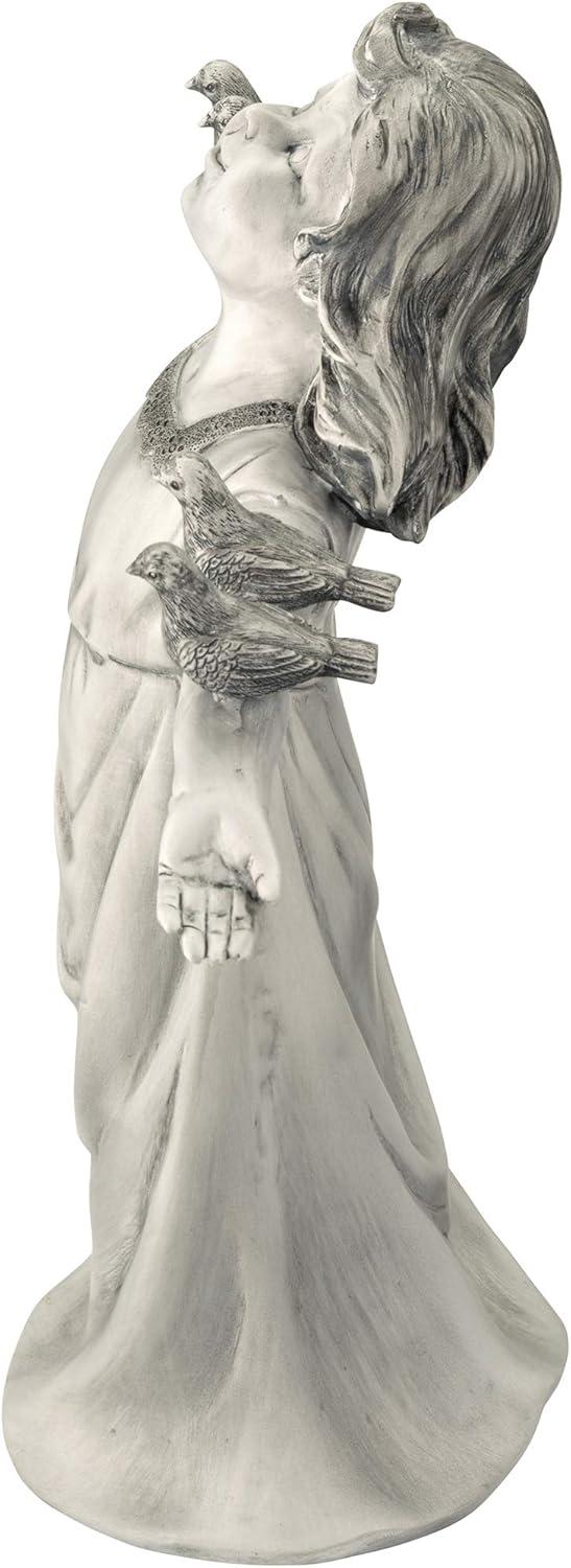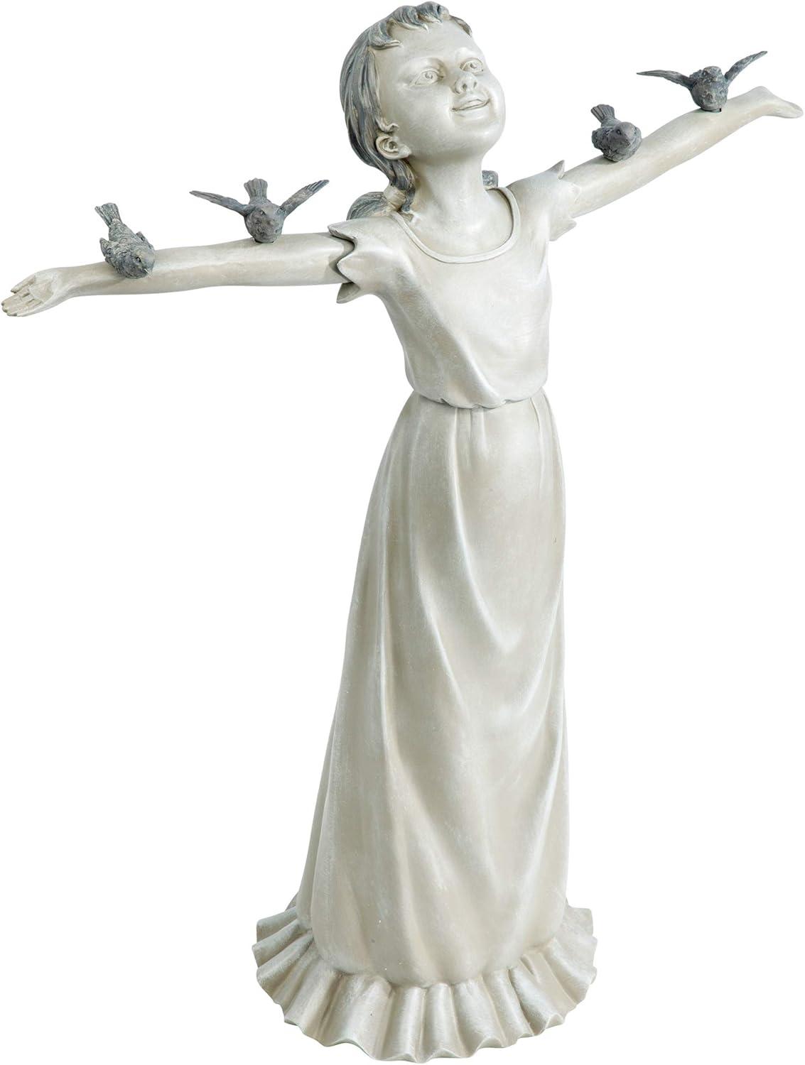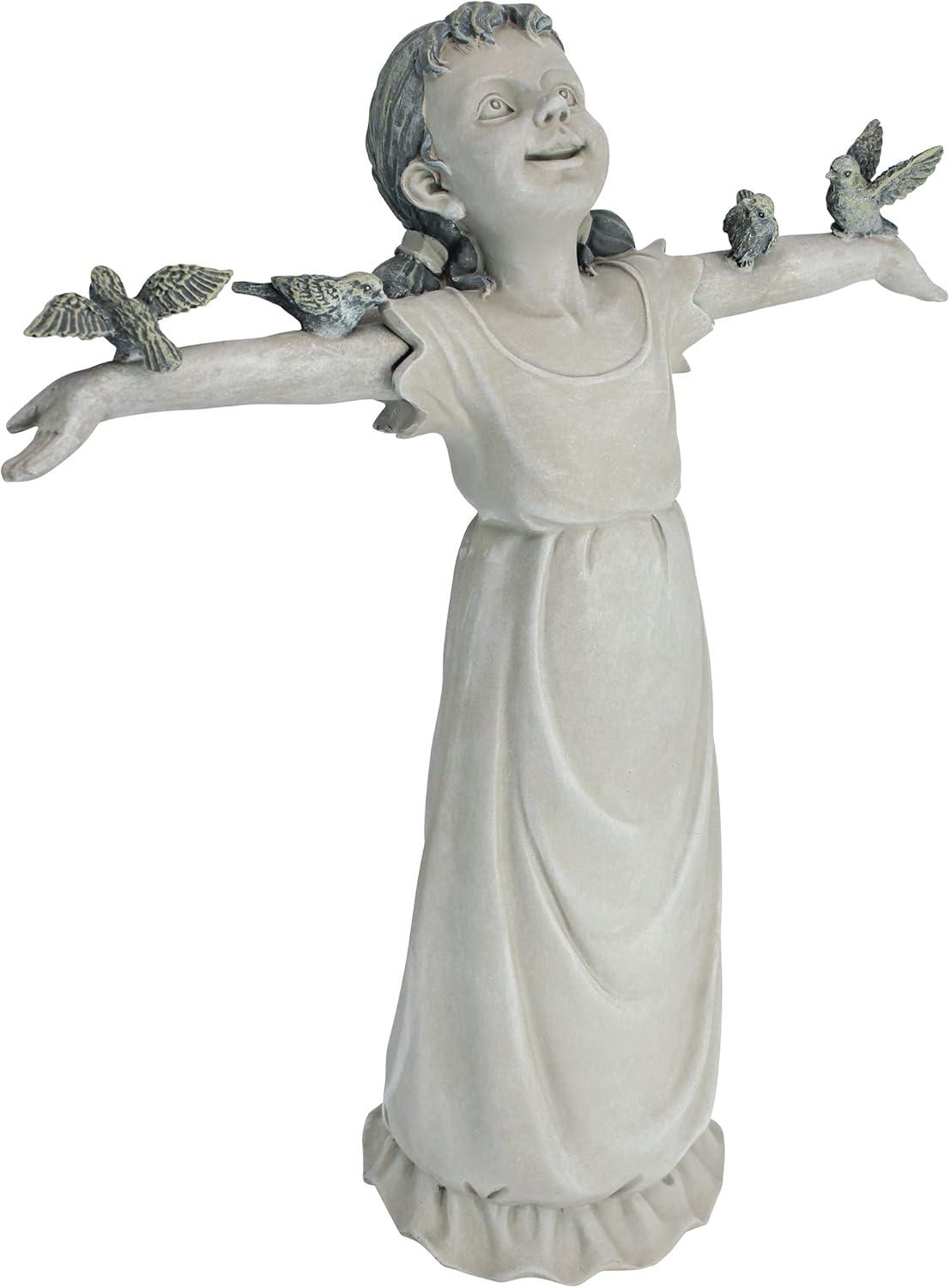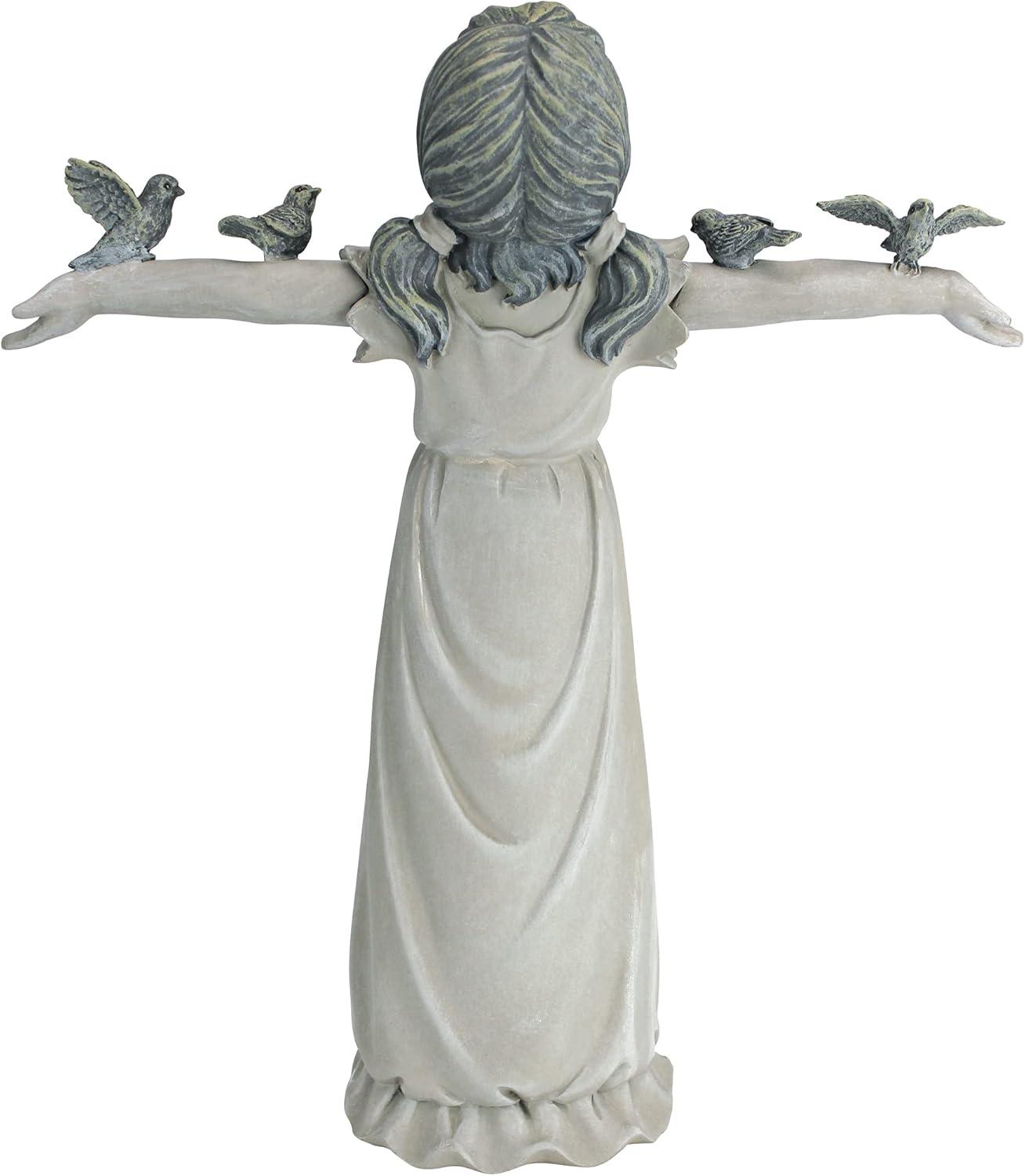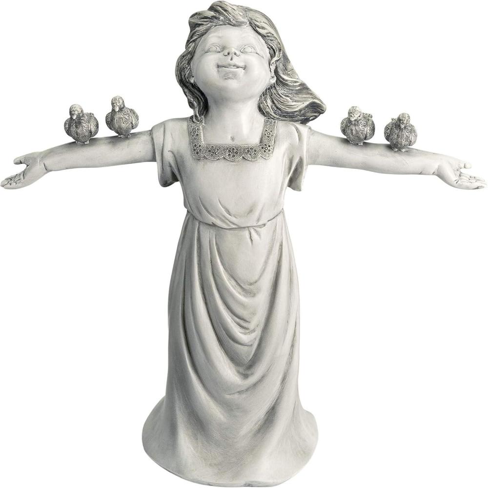 Design Toscano Basking in Glory Little Girl with Birds Outdoor Garden Statue, Large, 29 inches tall, Cast Stone Resin, Two Tone Stone Finish(Handcast Polyresin Two Tone Stone Finish)
