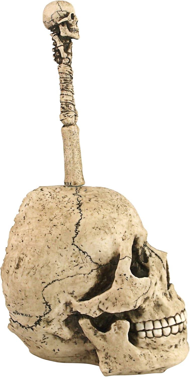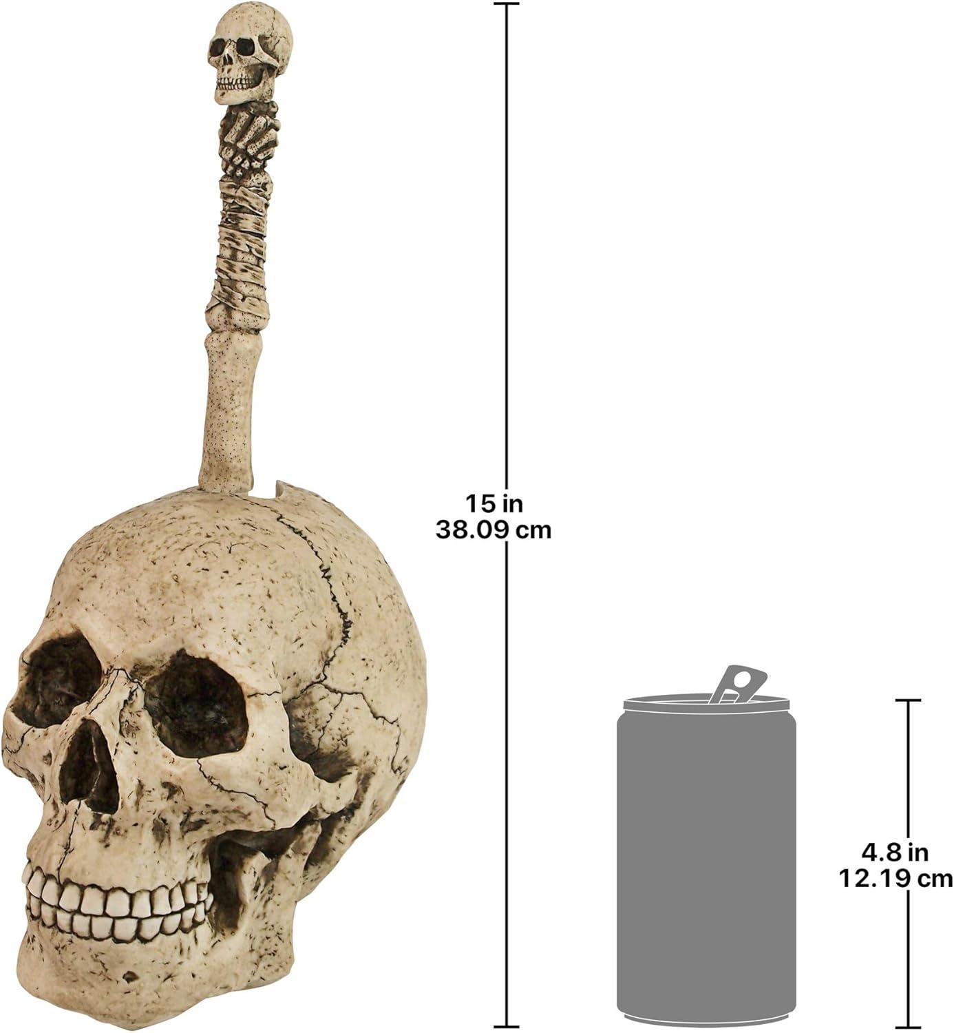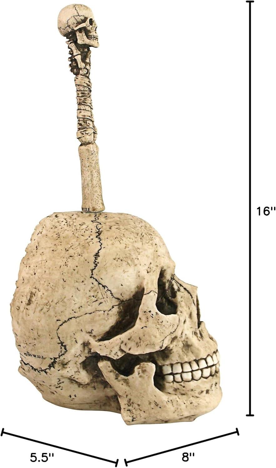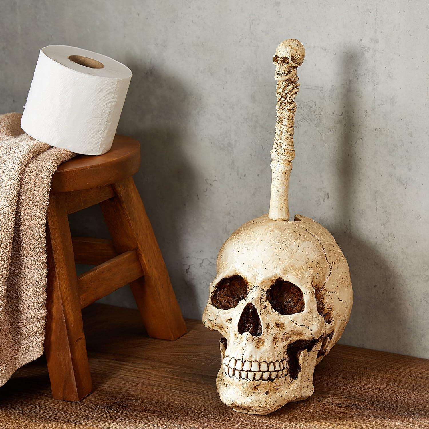 BRUSH YOUR “HEAD” CLEAN – He won't give you the “brush off!” Our gruesome skeleton statue stands at the ready to give you an extra hand cleaning the toilet bowl, perfect for your gothic bathroom decor