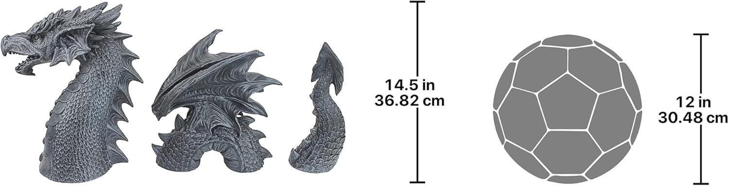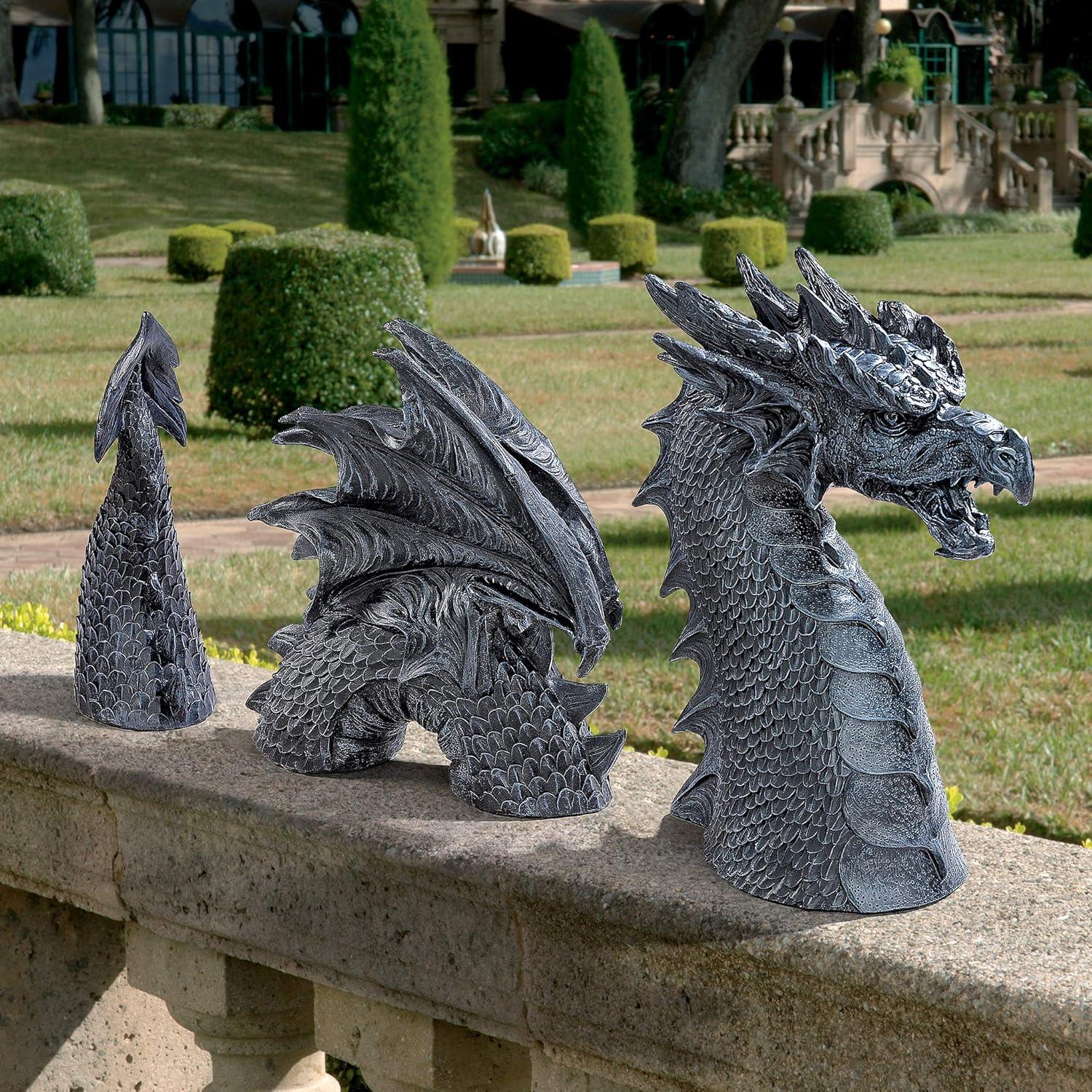 Design Toscano Benevolent Dragon Asian Garden Statue, 27 Inch, Resin, Gray Stone Finish(Dragon of Falkenberg)