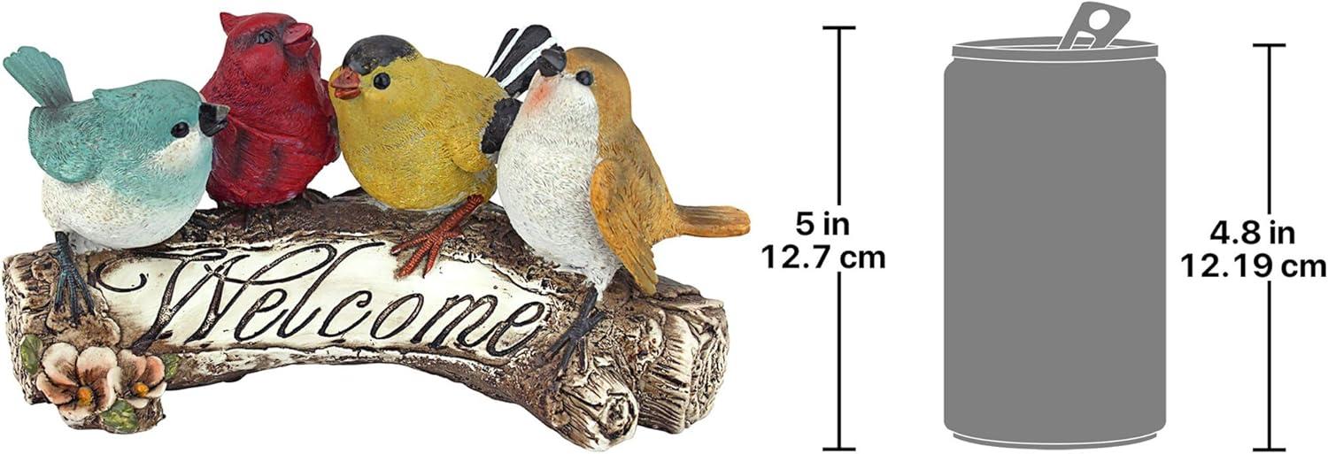 You can roll out the welcome mat with these adorable birds who'd love to pose in home or garden. Our Design Toscano-exclusive, bird welcome statue, complete with four adorable birds, is sculpted 360 degrees for an even “chirpier” welcome! Cast in quality designer resin, this bird welcome sculpture is hand-painted as the perfect house-warming gift with a little bit of garden hospitality! Another Design Toscano-exclusive garden animal statue! 4 ½”Wx10 ½”Dx5″H. 2 lbs.
