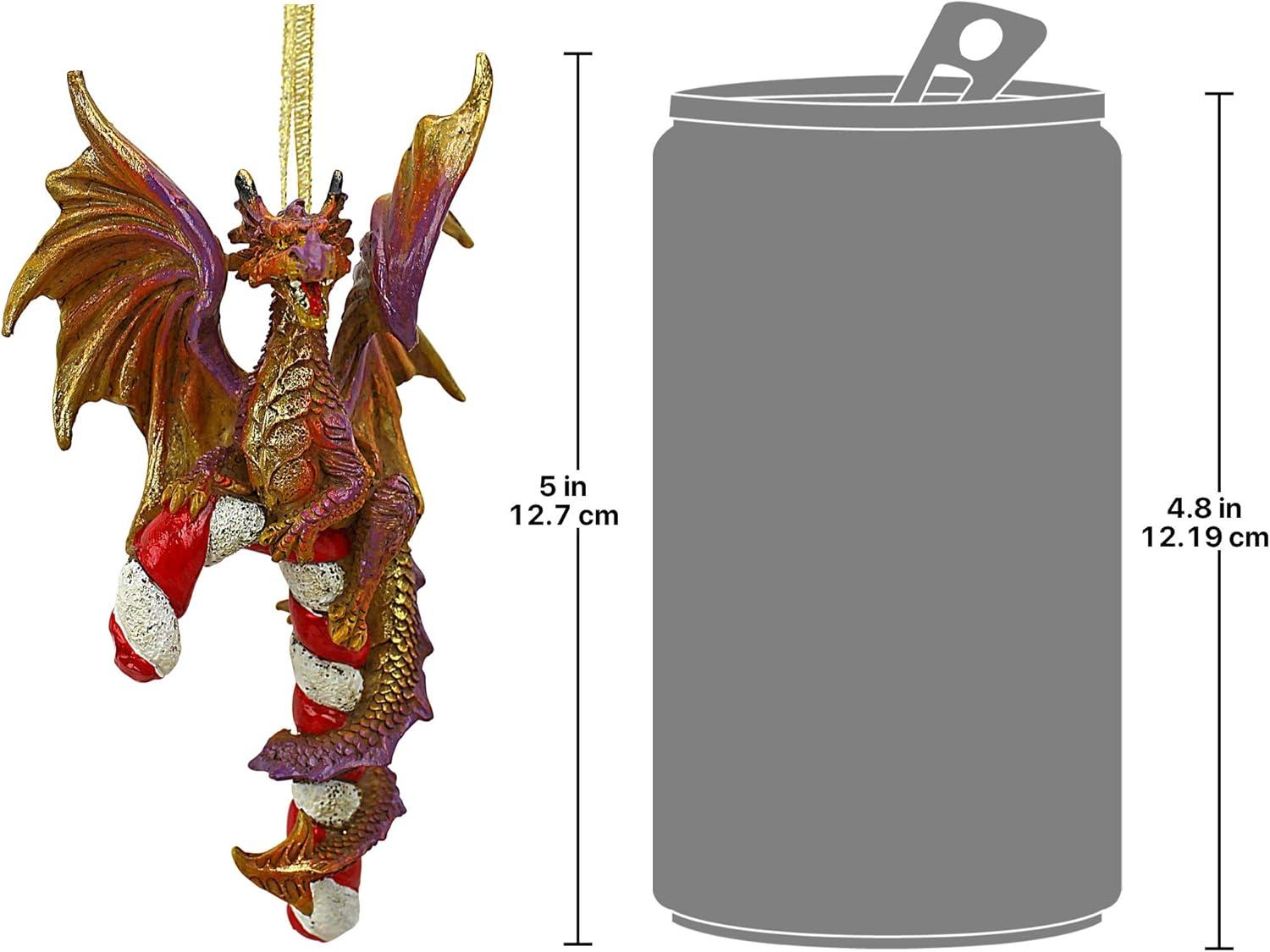 Design Toscano Blitzer the T Rex Dinosaur Christmas Tree Ornament, 5 Inch Long, Cast Stone Resin with Glass Ball, Green Glitter Finish(Cane and Abel)