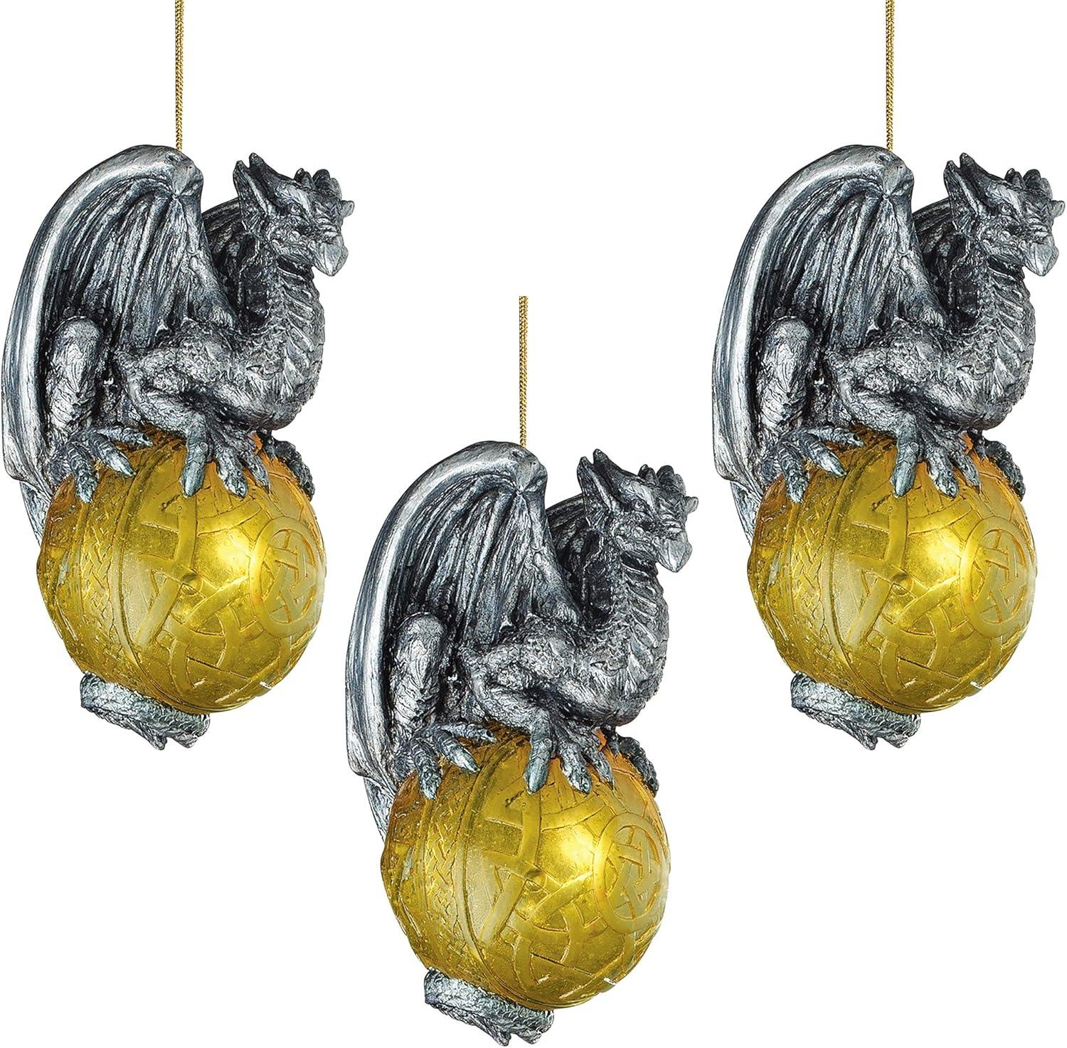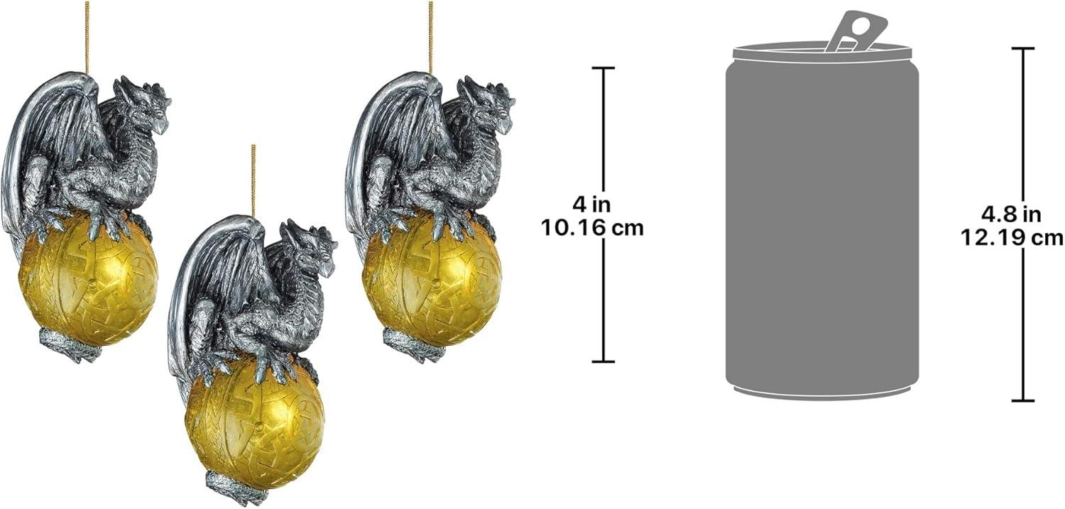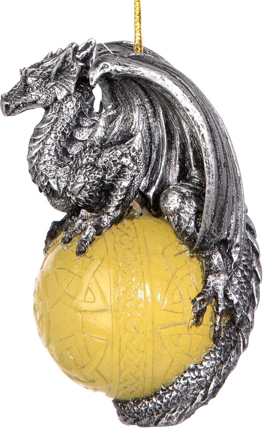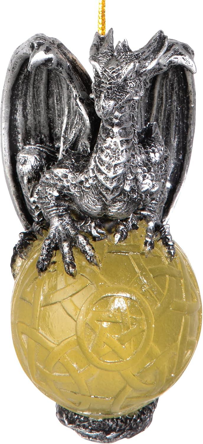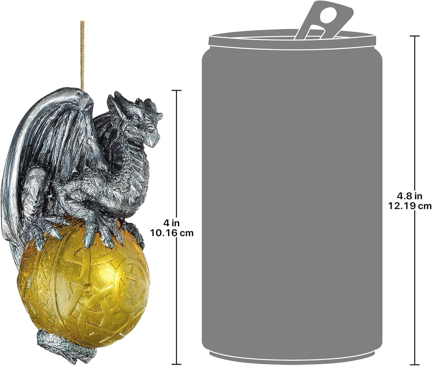 Design Toscano Blitzer the T Rex Dinosaur Christmas Tree Ornament, 5 Inch Long, Cast Stone Resin with Glass Ball, Green Glitter Finish(Celtic Dragon)
