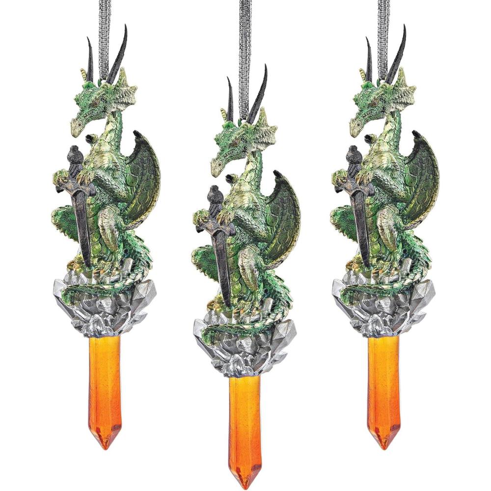 Before reindeer, Santa's sleigh was dinosaur-powered! Blitzer the Tyrannosaurus Rex, the only remaining pre-historic creature of the North Pole team, pushes through the punishing cold to take his sparkly reptile green spot on a spun glass crystalline ball for your holiday tree! Cast in quality designer resin and found only at Design Toscano, this hand-painted collectible ornament makes a monstrous gift to celebrate the colossal king of natural selection. 5″Wx2″Dx3½”H. ½ lb.
