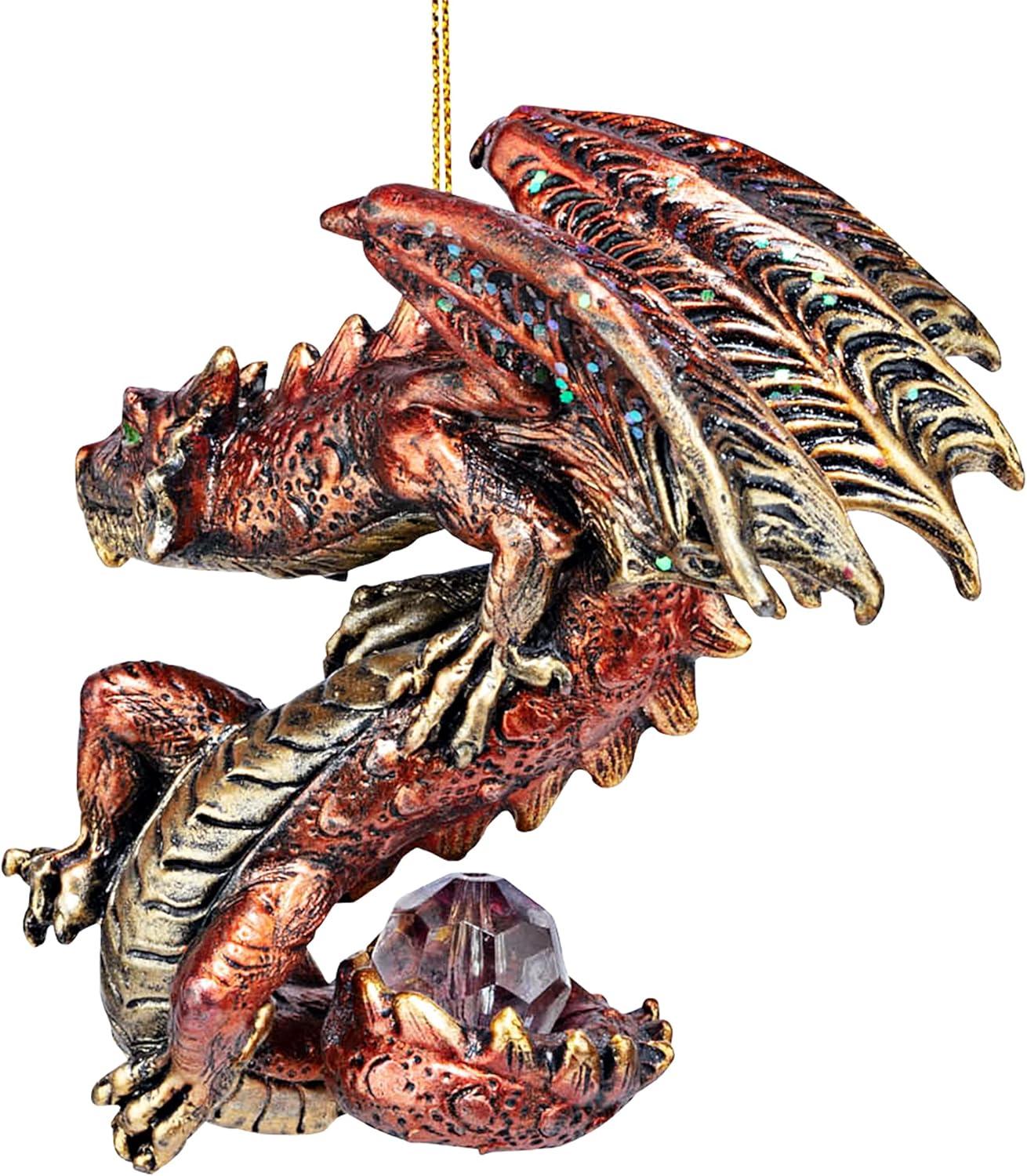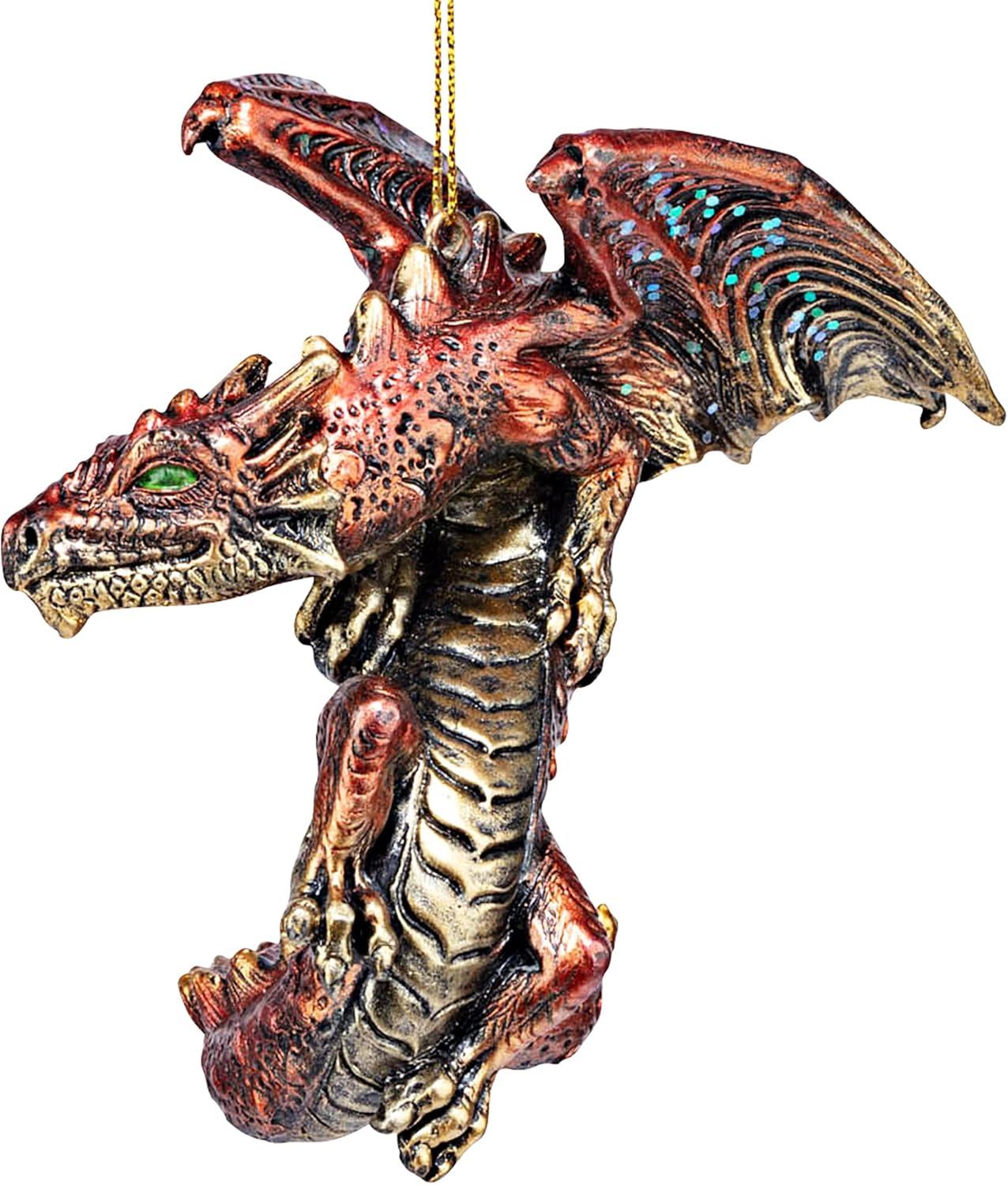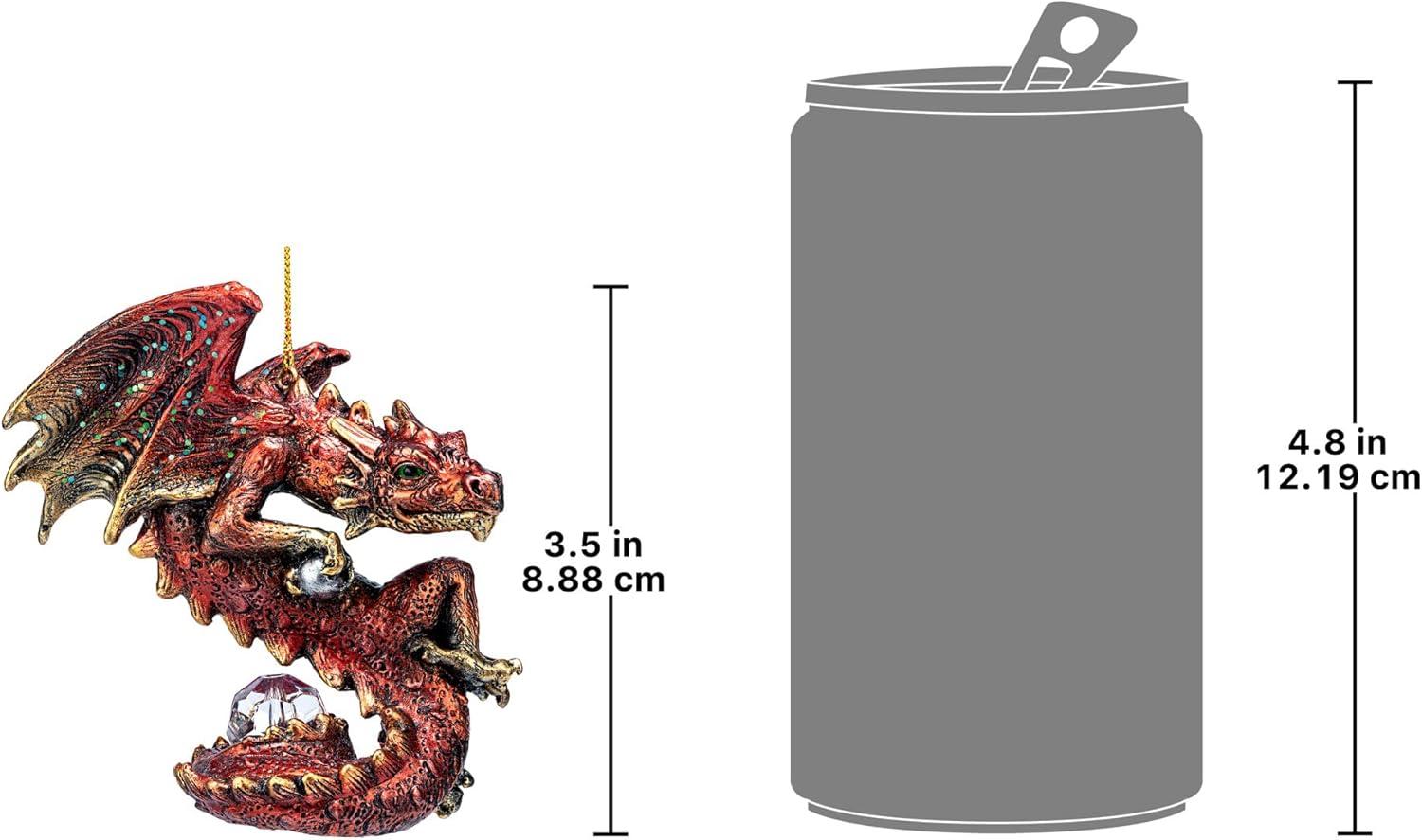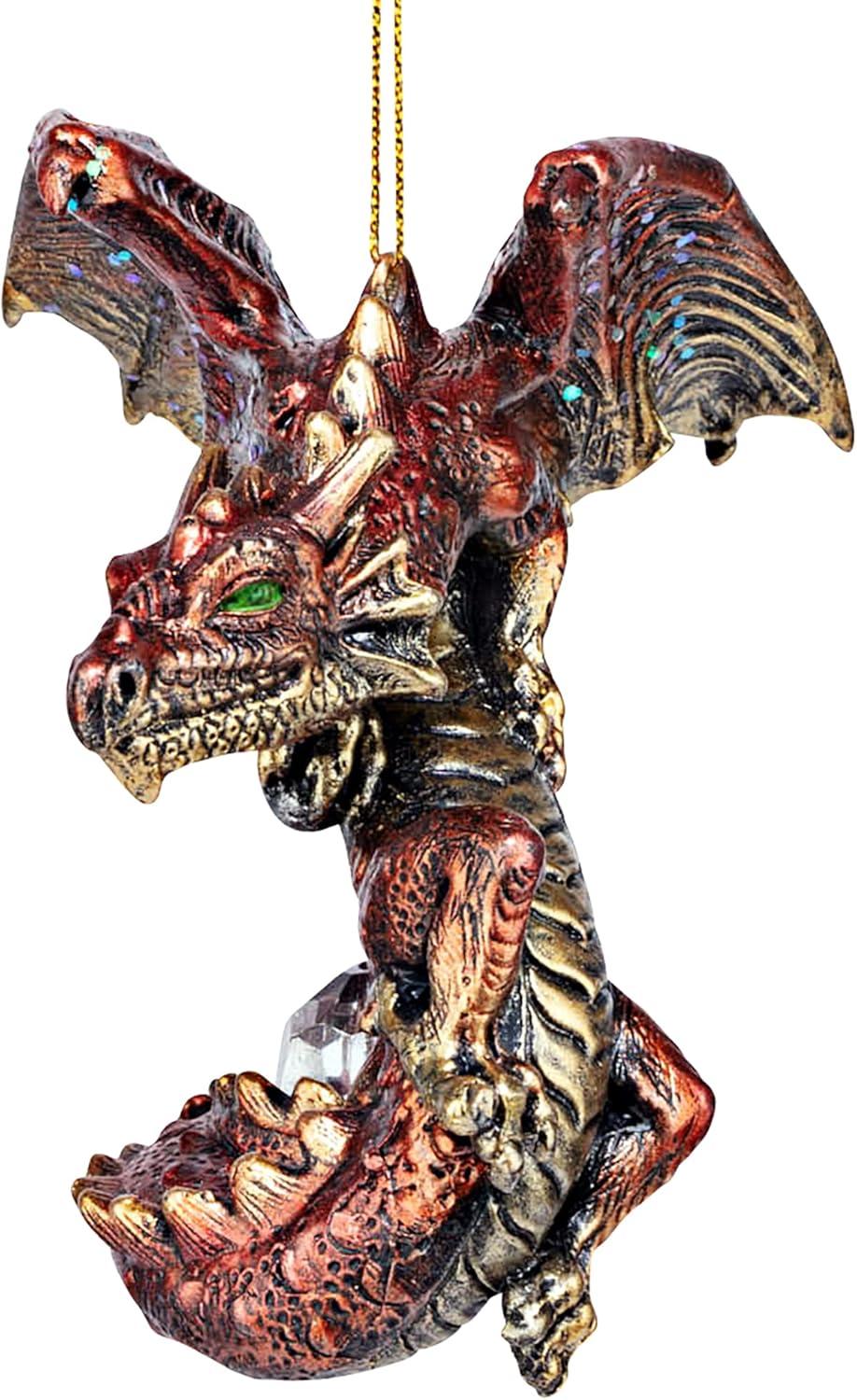 Design Toscano Blitzer the T Rex Dinosaur Christmas Tree Ornament, 5 Inch Long, Cast Stone Resin with Glass Ball, Green Glitter Finish(Light Dragon)