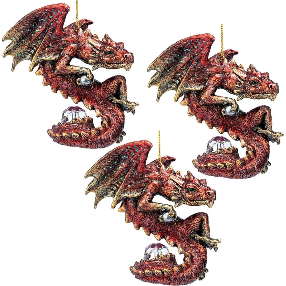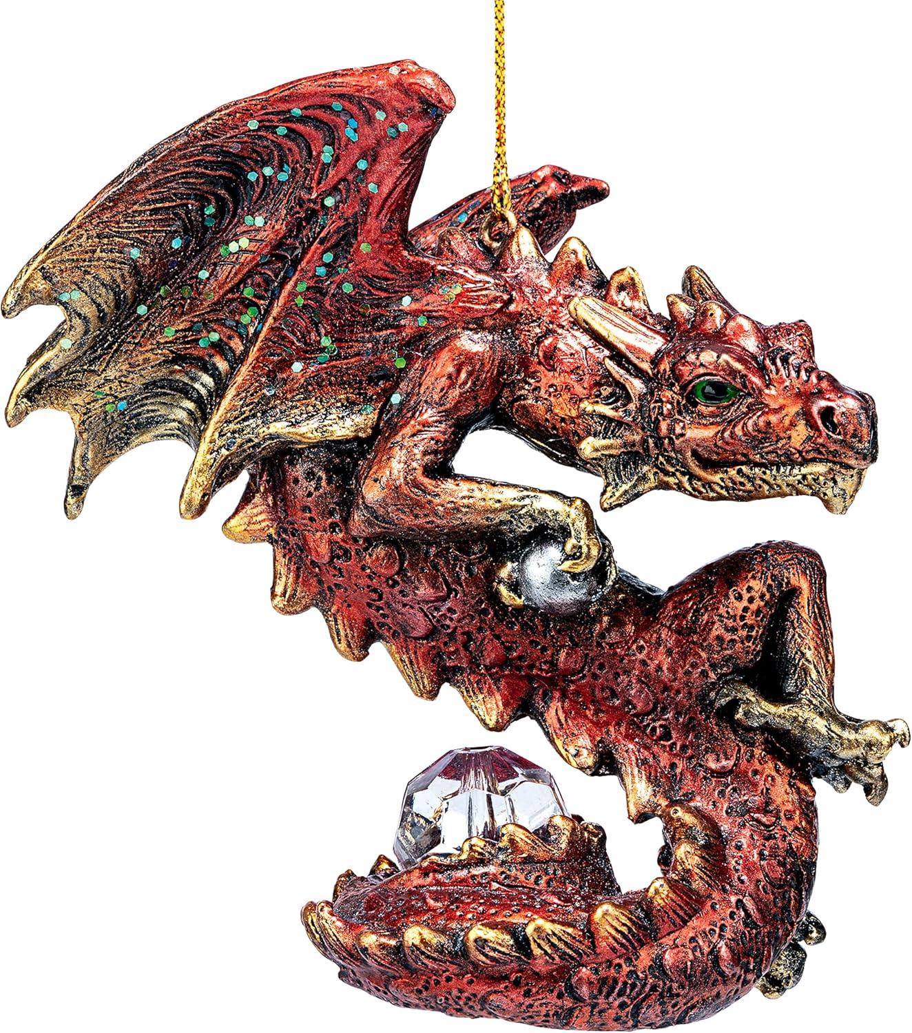 HIGH-QUALITY HOLIDAY ORNAMENTS – Hand-cast by Santa's elves using real crushed stone bonded with durable designer resin, our dinosaur Christmas ornaments are topped with glittering details, a ribbon hanger and a spun glass ball to be festive holiday decorations