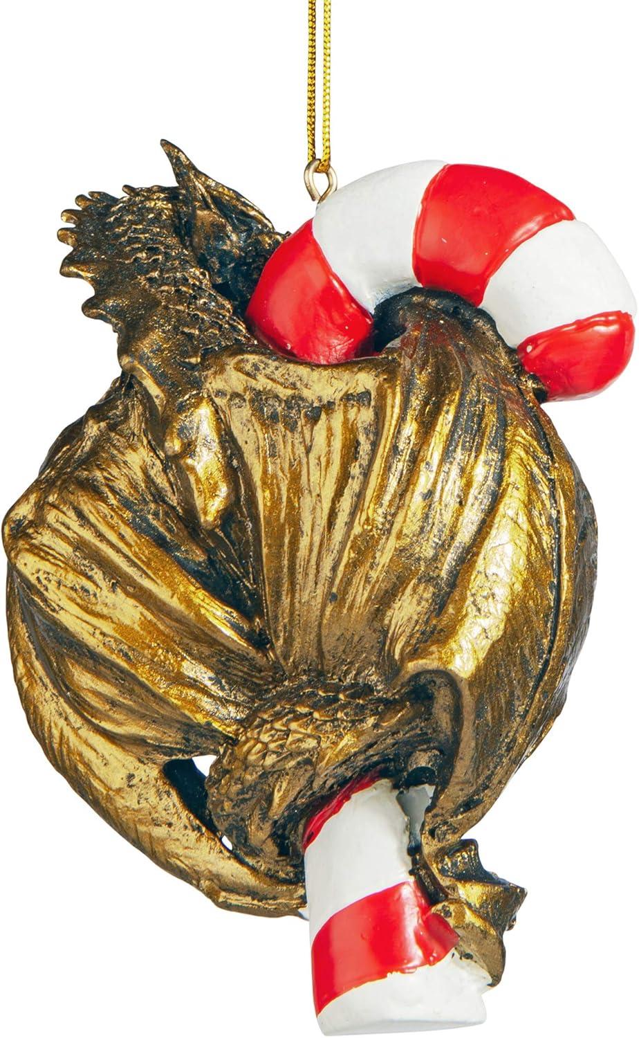 Design Toscano Blitzer the T Rex Dinosaur Christmas Tree Ornament, 5 Inch Long, Cast Stone Resin with Glass Ball, Green Glitter Finish(Sweet Tooth)