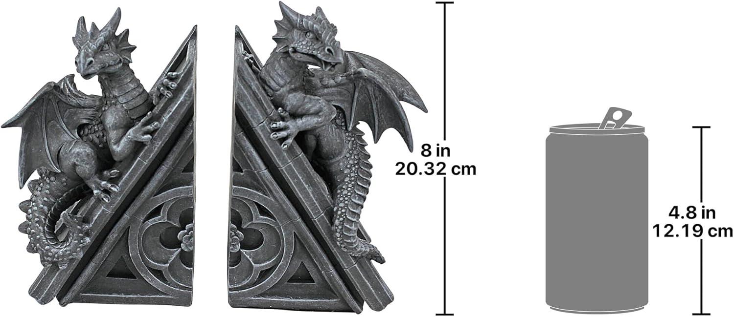 Design Toscano Castle Dragon Gothic Decor Decorative Bookend Statues, 8 Inch, Set of Two, Polyresin, Grey Stone(Single)