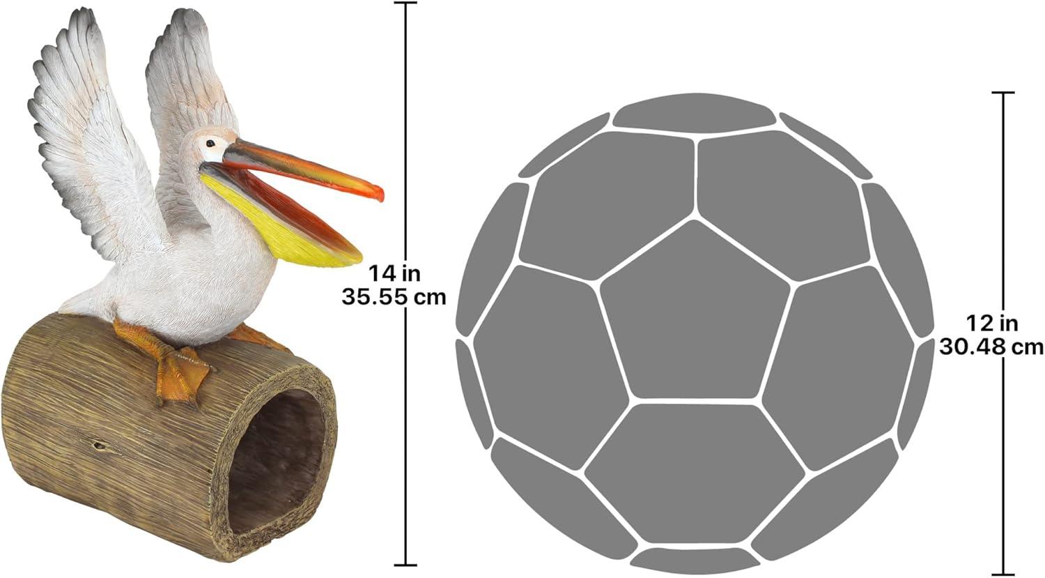 Fresh from a seaside perch, this beautiful pelican statue evokes dreams of an oceanside lifestyle! Beautiful near pool or pond, our animal sculpture is cast in two feet of quality designer resin, hand-painted to capture details from the faux wood pilings and sturdy ropes to the downy feathers and long bills. Whether seeking out fish or fishing for compliments, this Design Toscano-exclusive bird sculpture will garner praise in home or garden. 9″Wx9″Dx24″H. 5 lbs.