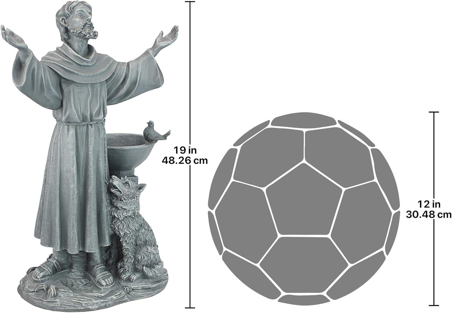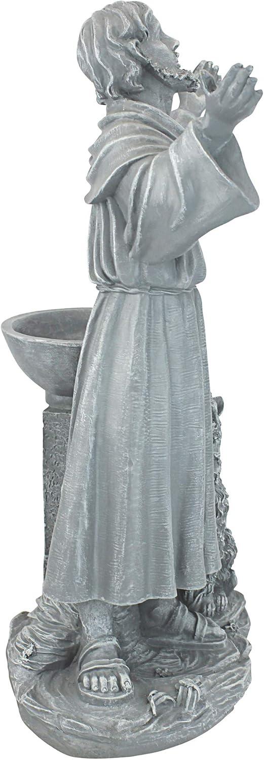 Design Toscano Francis of Assisi Blessing Religious Garden Decor Statue with Bird Bath Feeder, 19 inches Tall, Cast Stone Resin, Gray Stone Finish(Greystone)
