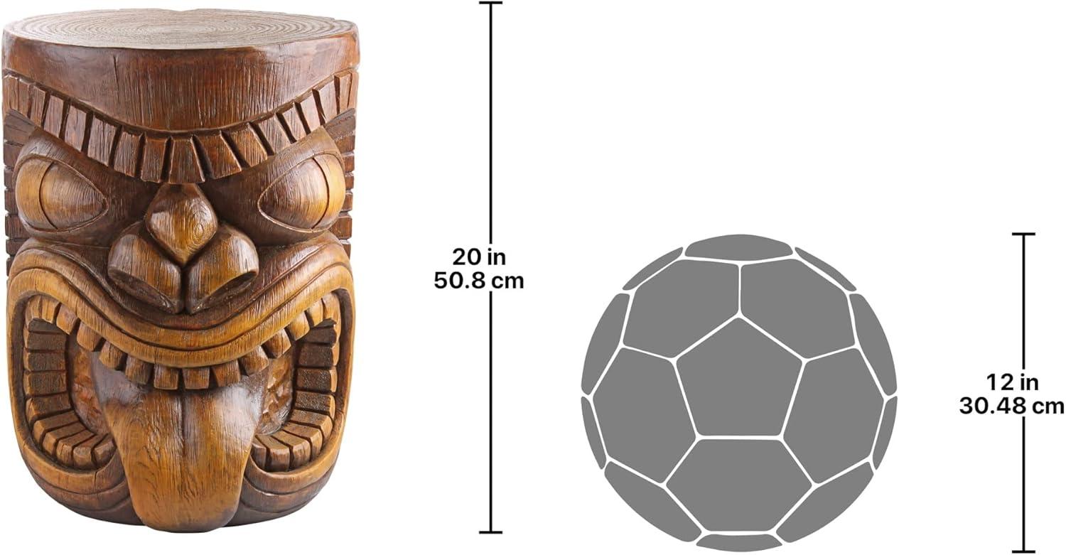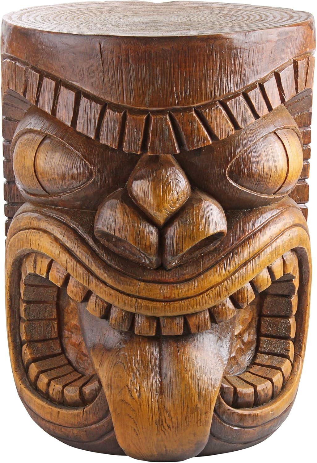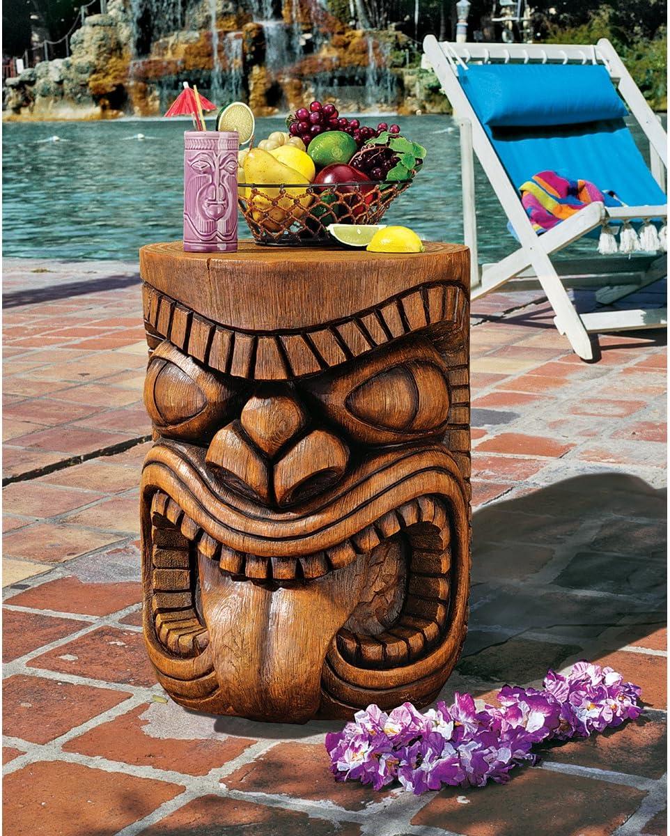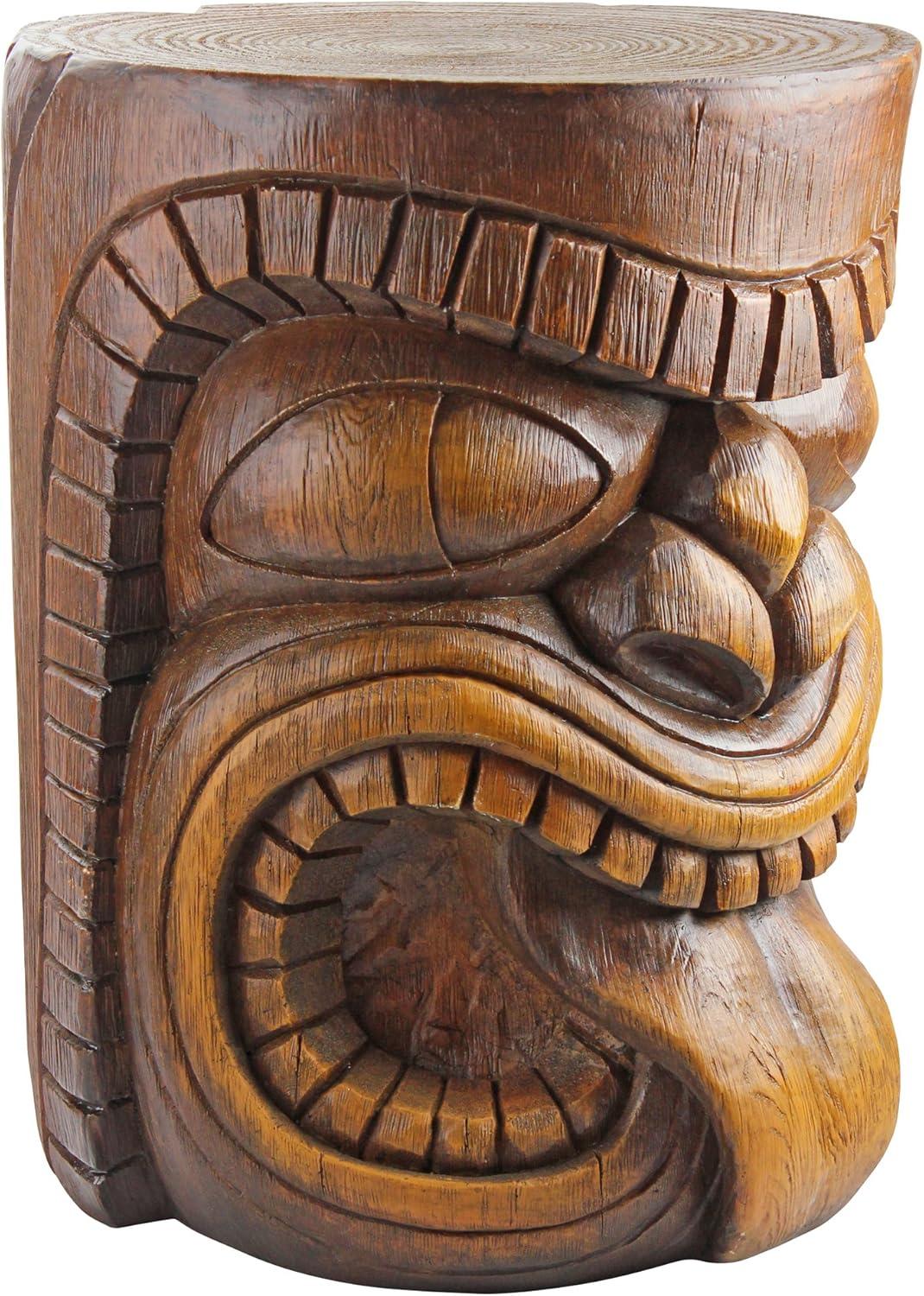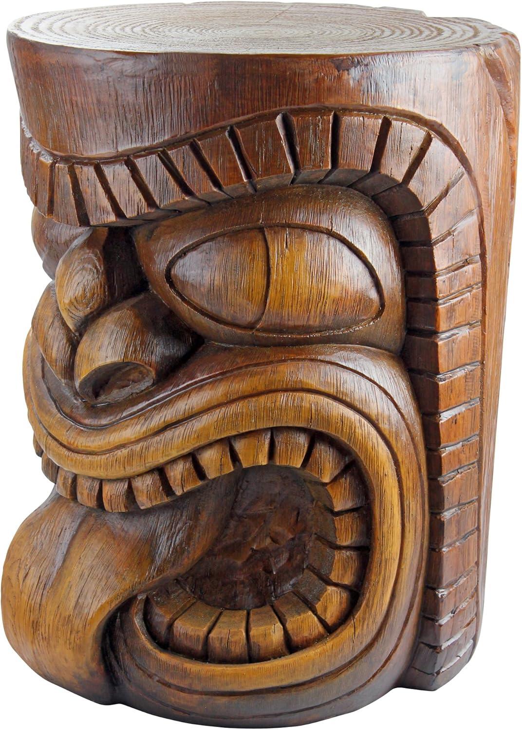 Design Toscano Grand Tiki Face Kanaloa Teeth Indoor/Outdoor Side Table Statue, Patio, Bar, Den, 20 inch tall, Cast Stone Resin, Woodtone Finish(Handcast Polyresin Woodtone Finish)