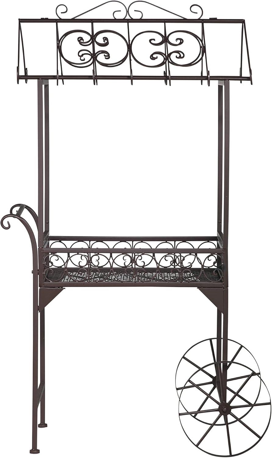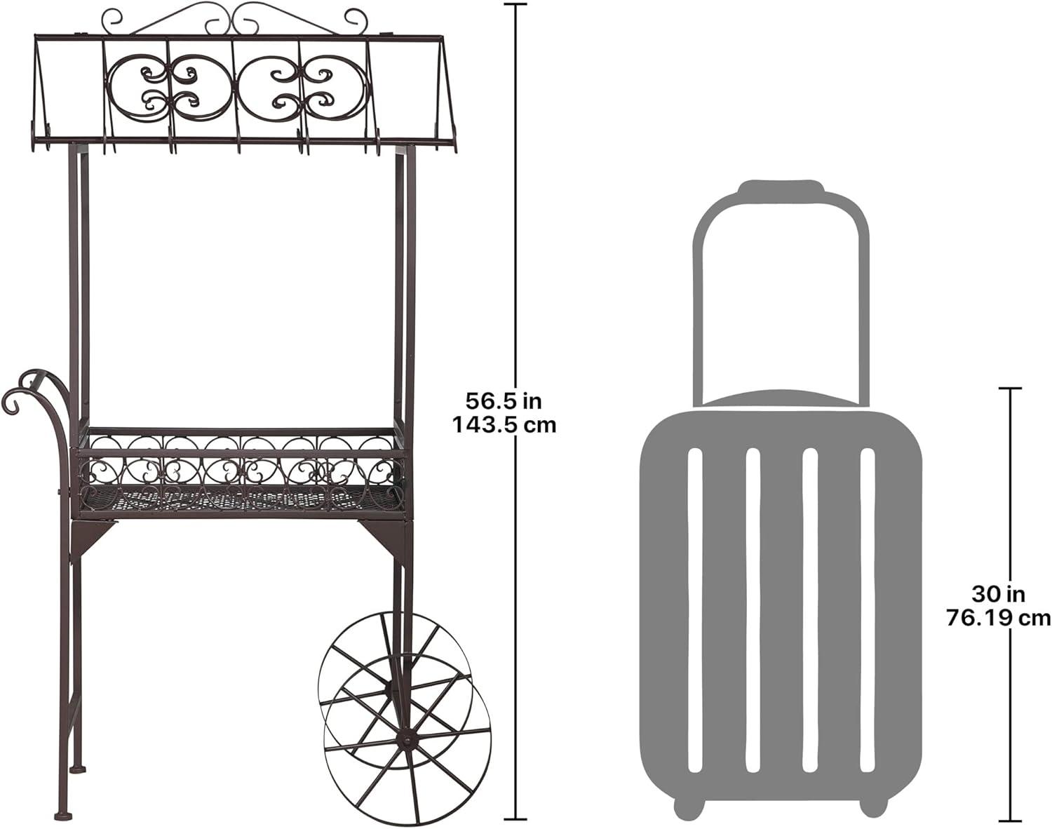 Whether you use this French style pushcart in your garden in the tradition of Parisian flower peddlers or employ it for serving refreshments on porch, patio or deck, you're sure to swoon at its whimsical style! Boasting heavy Gauge metal Construction with moveable wheels for easy repositioning, this Design Toscano adorable work of furniture art features curved rafters & a Diamond patterned base with a durable, weather-resistant finish. Standing almost five' Tall, this statementpiece has a most romantic accent whether filled with potted posies, afternoon lemonade or early evening's cocktails! Simple assembly required. 28″Wx16″dx56½ “H. 25 lbs.